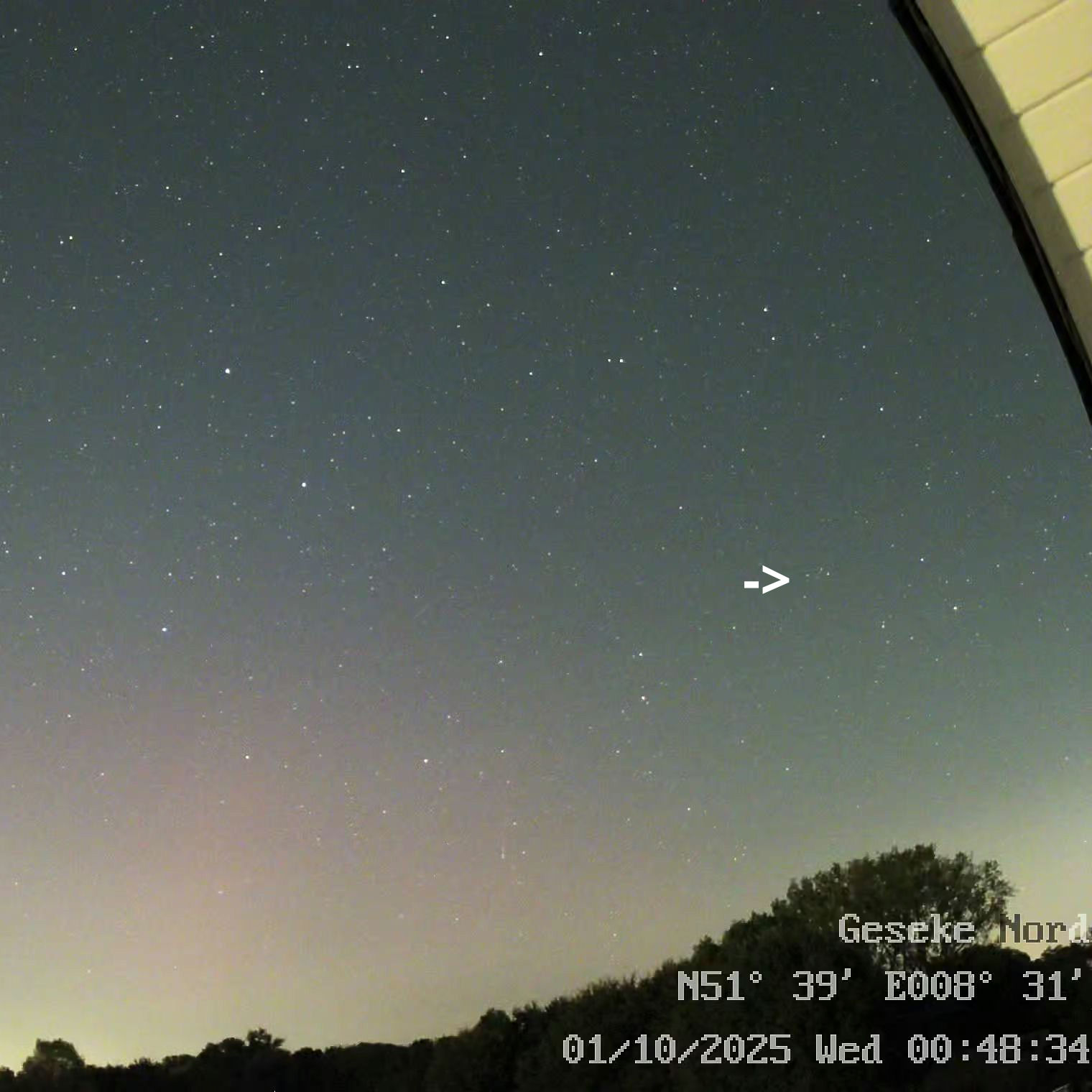 Auch ich hatte am Morgen vom 03.10. zwischen 3:30 Uhr und 5:30 Uhr Glück und konnte 273 Bilder von C/2025 A6 (Lemmon) mit meinem 8”-Dobson aufnehmen. Das weitere Bild ist mit einem 50mm-Objektiv aufgenommen, was allerdings nach 25 Bildern vollkommen angelaufen war. :D