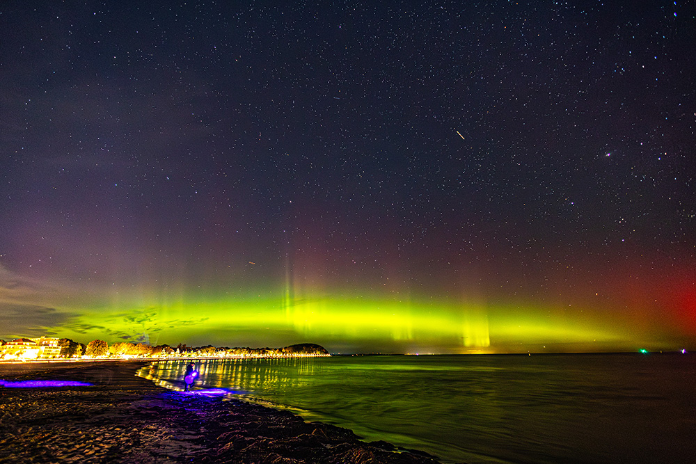 Travemünde an der Ostsee auch deutlich visueller grüner Bogen. Darüber fotografisch rot. Bilder und weitere Infos folgen dann später.