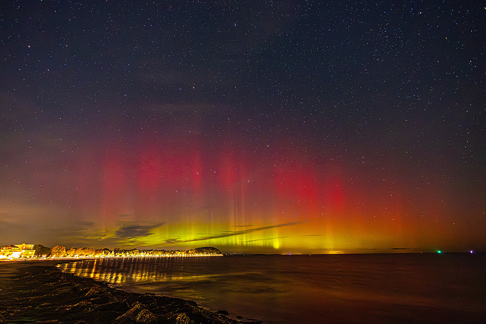 Travemünde an der Ostsee auch deutlich visueller grüner Bogen. Darüber fotografisch rot. Bilder und weitere Infos folgen dann später.