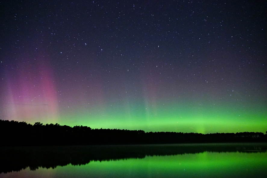Großartig war es gestern Abend und viel mehr als ich erwartet hab! Weil auf der Webcam vom Peilturm Kap Arkona der grüne Bogen schon so hoch war, als ich geguckt habe, bin ich runter zur Badestelle am See gegangen. Und da hat sich die Zeit in der Kälte wirklich gelohnt, denn das PL war bereits zu dem Zeitpunkt visuell sichtbar und wurde noch deutlich heller. Und auch Farben waren deutlich sichtbar. Als alles tropfnass und das Polarlicht deutlich schwächer geworden war, bin ich nach Hause gegangen. Vom zweiten Substorm habe ich dann gerade noch so etwas vom Fenster aus mitbekommen. Weil inzwischen die vom See aufsteigenden Nebelschwaden immer höher kamen und auch Wolken aufzogen, habe ich die Beobachtung gegen Mitternacht abgebrochen.