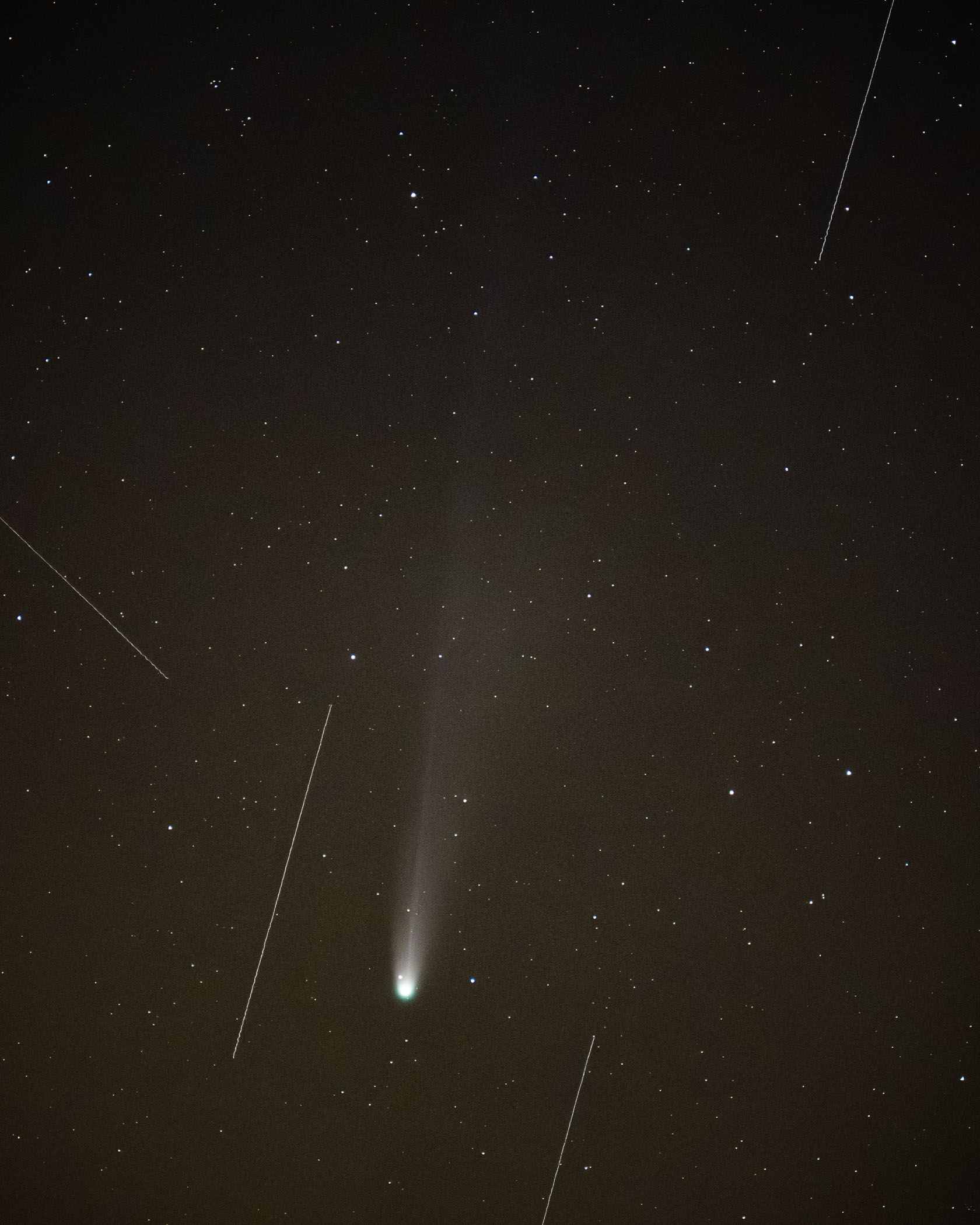 Gestern Abend war es mal klar, trotzdem zogen immer wieder einige Wolkenfelder durch. Aber immerhin hat es für ein paar Bilder gereicht, die teilweise auch den extrem langen Schweif zeigen.