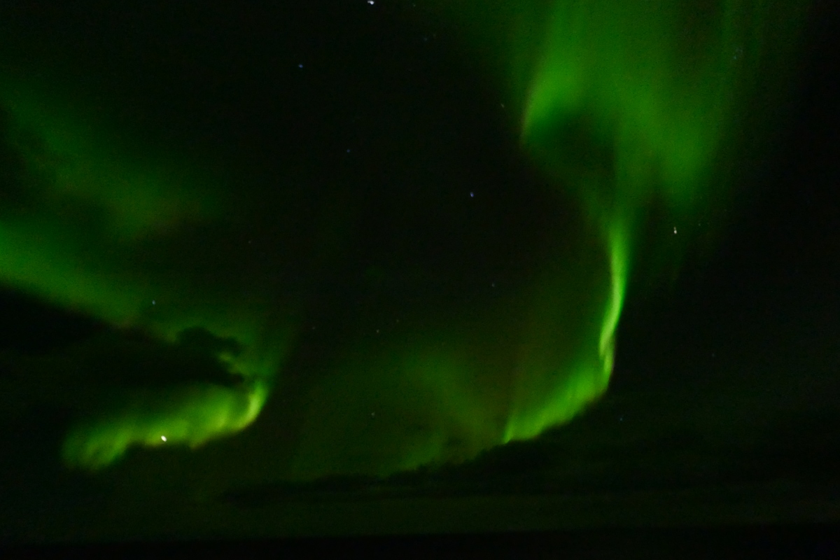 ich war in dieser Nacht auf einem Schiff westlich von Reykjavik. Das Polarlicht war zeitweise direkt über dem Schiff. Die Aufnahmen sind nur wenig heller als der visuelle Eindruck in dieser Nacht. Panasonic DMZ-TZ101, 0,5 Sek, ISO6400(oben) - 2500(mitte) - 6400(unten), Brennweite 25mm umgerechnet, Blende 3