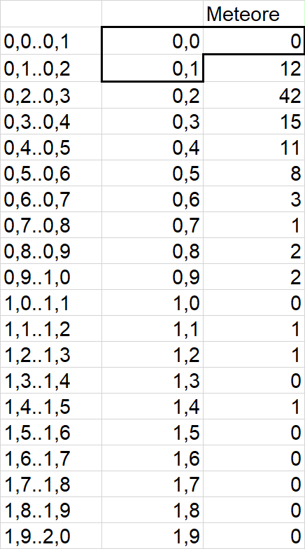 Erneut sei auf die unübliche Klassenfestlegung von Excel hingewiesen. So nimmt etwa die Klasse "0,02" tatsächlich alle Werte von einschließlich 0,010 bis unter 0,020 auf.