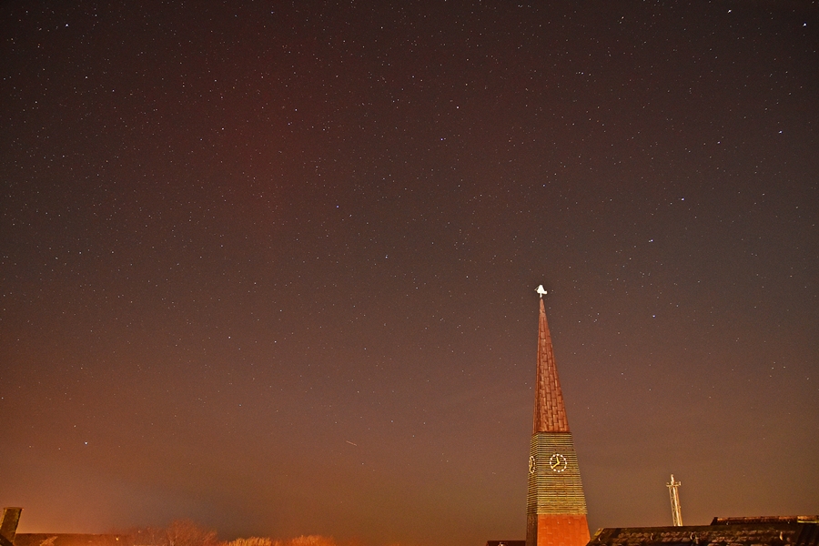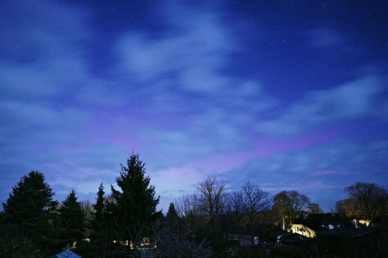 erst spät gab es bei uns wenigstens Wolkenlücken, so dass es zumindest für einen Beleg des Polarlichts gereicht hat.