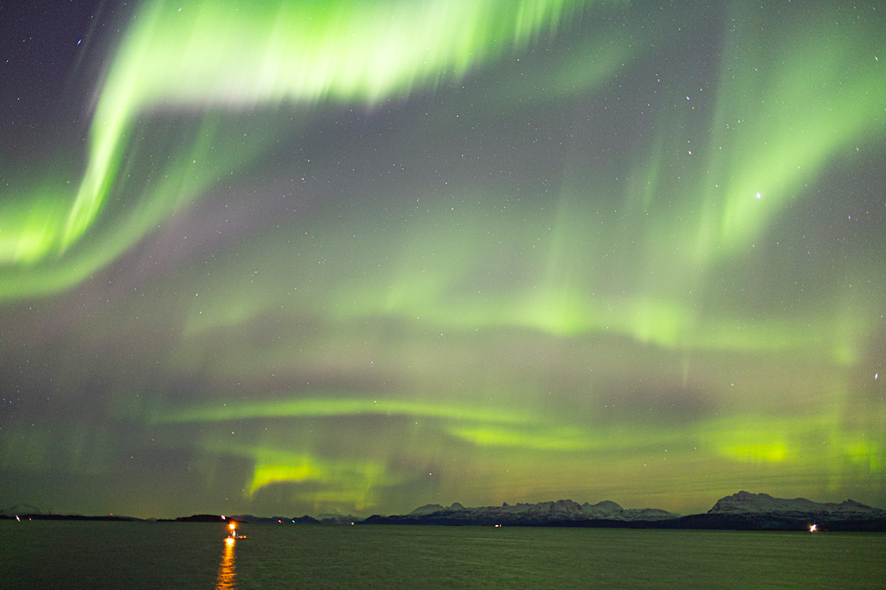 Sehr geehrtes Forum, anbei habe ich ein paar Aufnahmen die ich abends am 23.12.2025 in Harstad aufnehmen konnte. Die Richtung ist schwer zu definieren, denn es war quasi ‚overhead‘ und überall aber hauptsächlich im Norden/Nordosten.