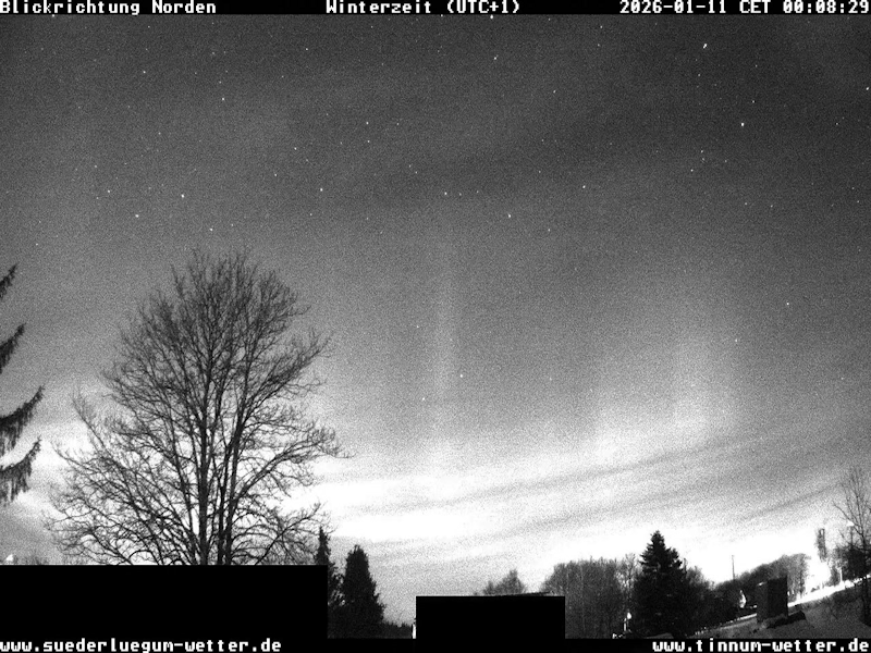 An der priv. Wetterstation Süderlügum (54° 52´19″ N/8° 54´45″ O) wurde am 10. und 11.01.2026 ein schwaches fotografisches Polarlicht in der Zeit von ca. 23.30 - ca. 01.00 Uhr MEZ aufgezeichnet.