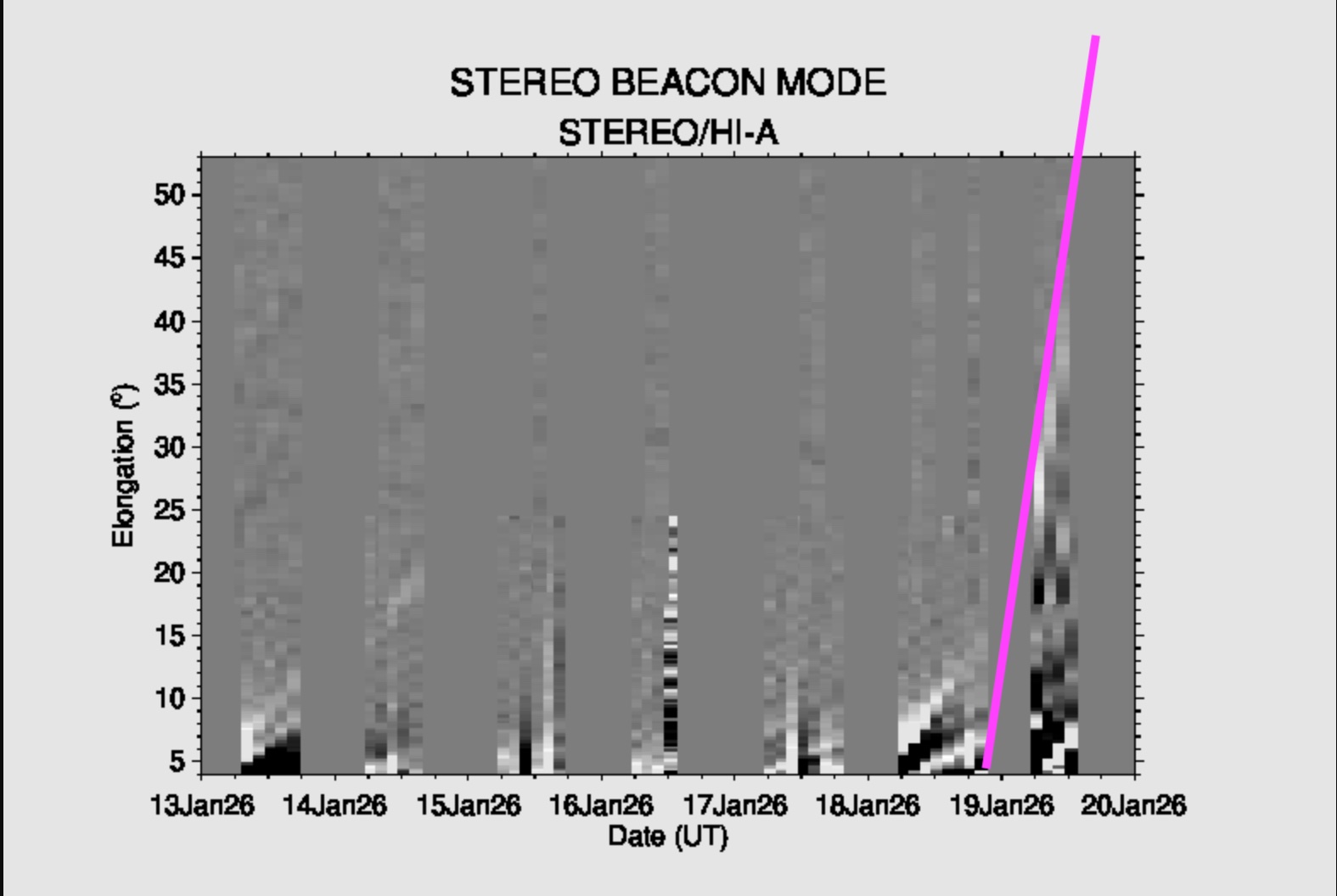 NASA M2M: Impact 20.1. 0200z, Kp 8-9 (realistischer ist wohl eher Kp 7-8)