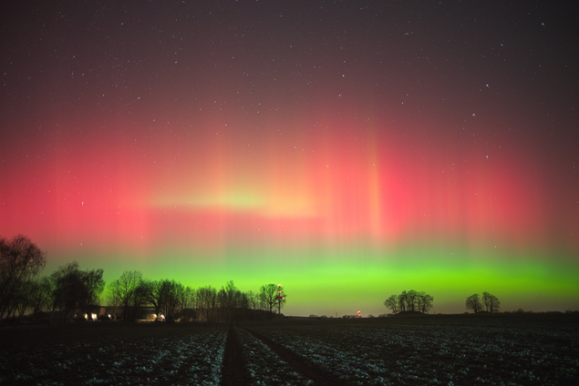 Den Event hätte ich fast verschlafen. Ein Anruf von meinen Vati brachte mich erst darauf aus dem Fenster zu schauen. Er ist Amateurfunker und meinte, es klinge nach Aurora. Die grünen Bänder liefen von Ost nach West. Später konnte man auch die hellen und schnell aufleuchtenden Flecken im Süden sehen. Um es mal poetisch auszudrücken, es sah aus, als ob jemand hell leuchtende Wolken aushauchte,die schnell wieder verschwanden.
