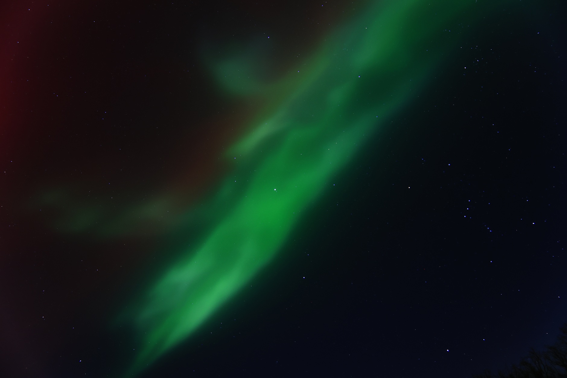 23:12 MEZ - das rote Polarlicht verlagert sich nach Westen