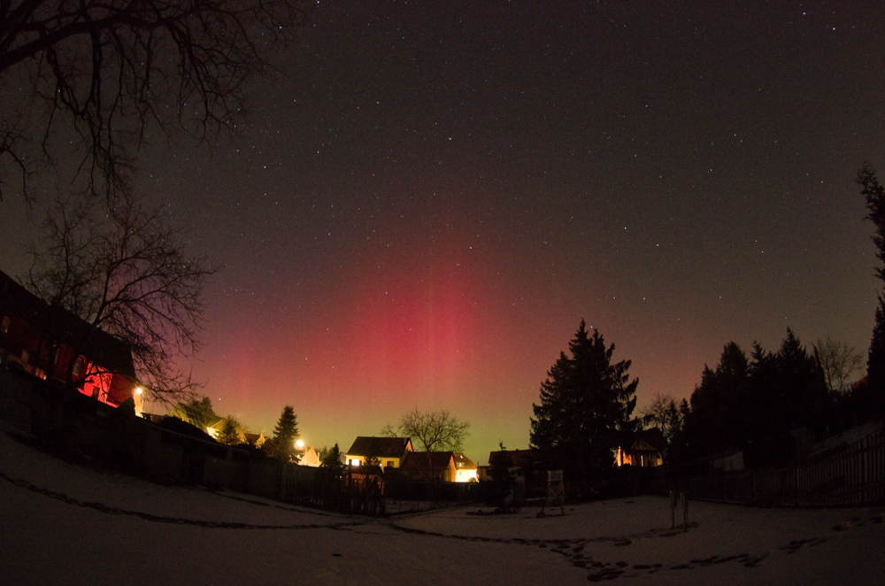 in der 2. Nacht waren in Bernau/Südschwarzwald nur gelegentlich rote Polarlichter im Norden zu sehen. Aber auf den Aufnahmen zeigte sich dann ein roter SAR-Bogen über den ganzen Himmel ....
