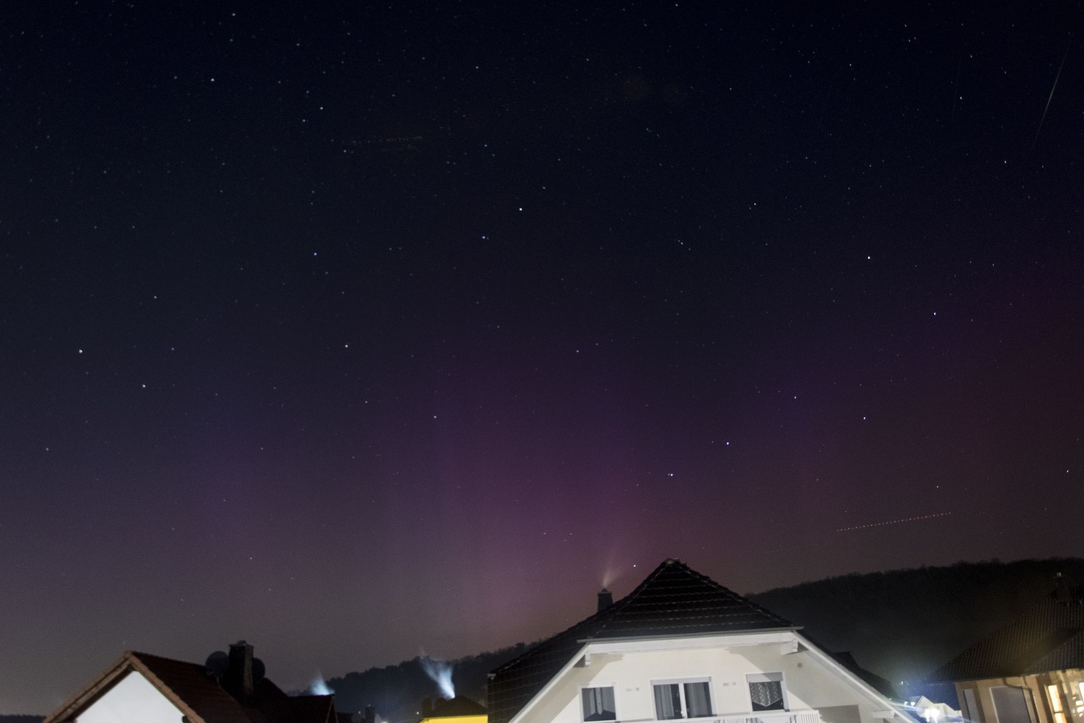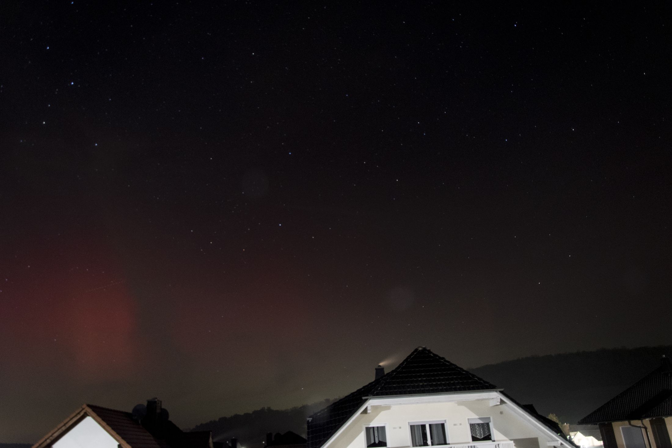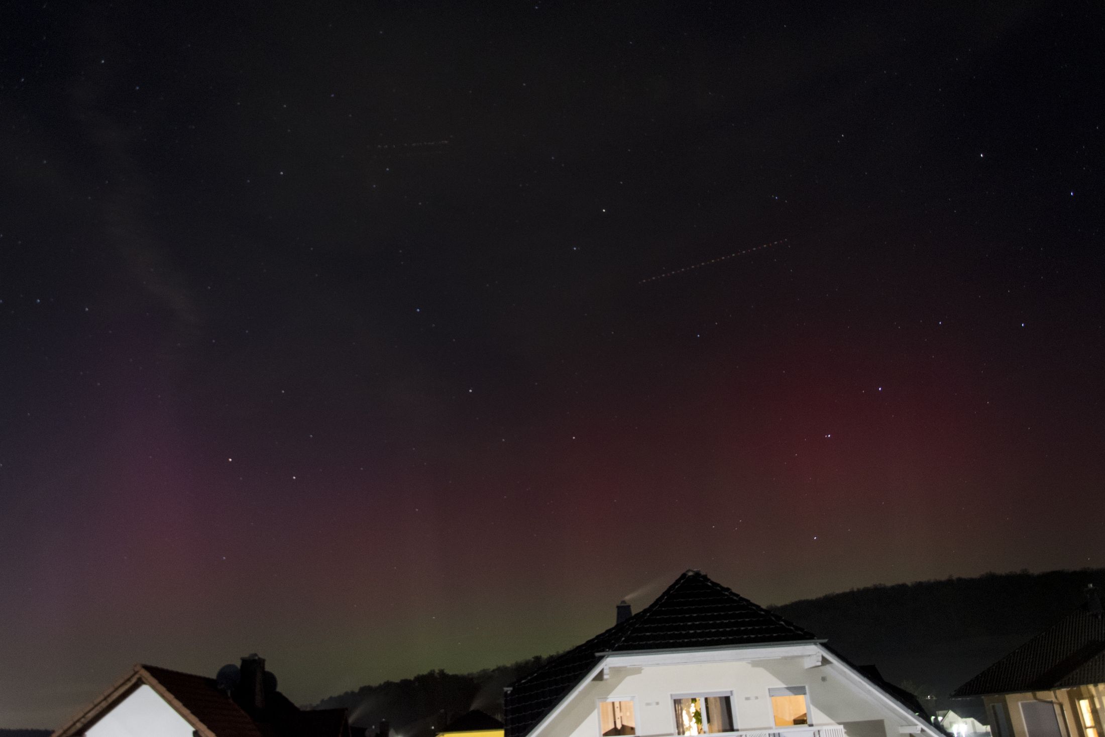 in der 2. Nacht waren in Bernau/Südschwarzwald nur gelegentlich rote Polarlichter im Norden zu sehen. Aber auf den Aufnahmen zeigte sich dann ein roter SAR-Bogen über den ganzen Himmel ....