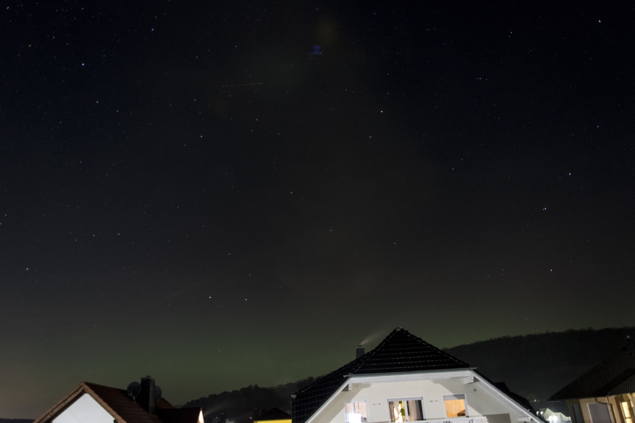 Helligkeit Polarlicht: fotografisch - ob auch visuell möglich, kann ich nicht angeben, da ich nur zeitlich punktuell nachschaute und in diesen Momenten keine erkennen konnte.