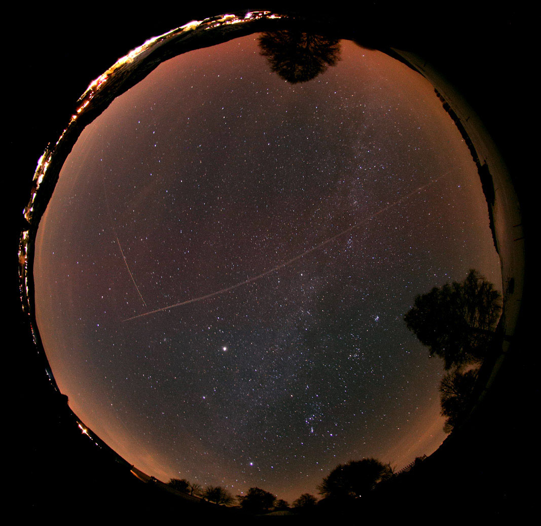 Hinweisen möchte ich auf ein angehängtes Bild von ca. 18:40h MEZ, welches ich extrem bearbeitet habe um eine Bedonderheit herauszuarbeiten: Es handelt sich um die grünen Punkte, rechts im Bild.