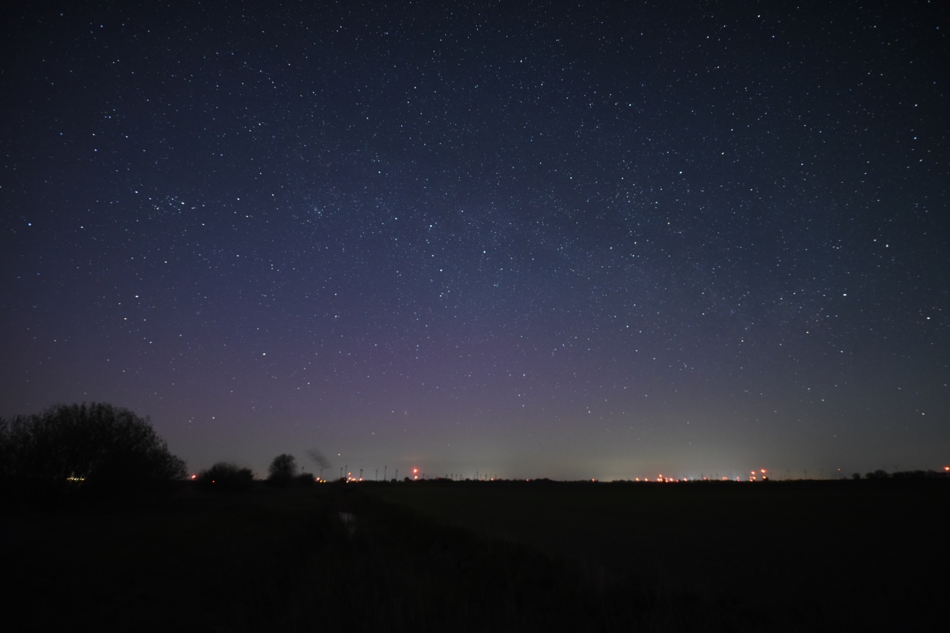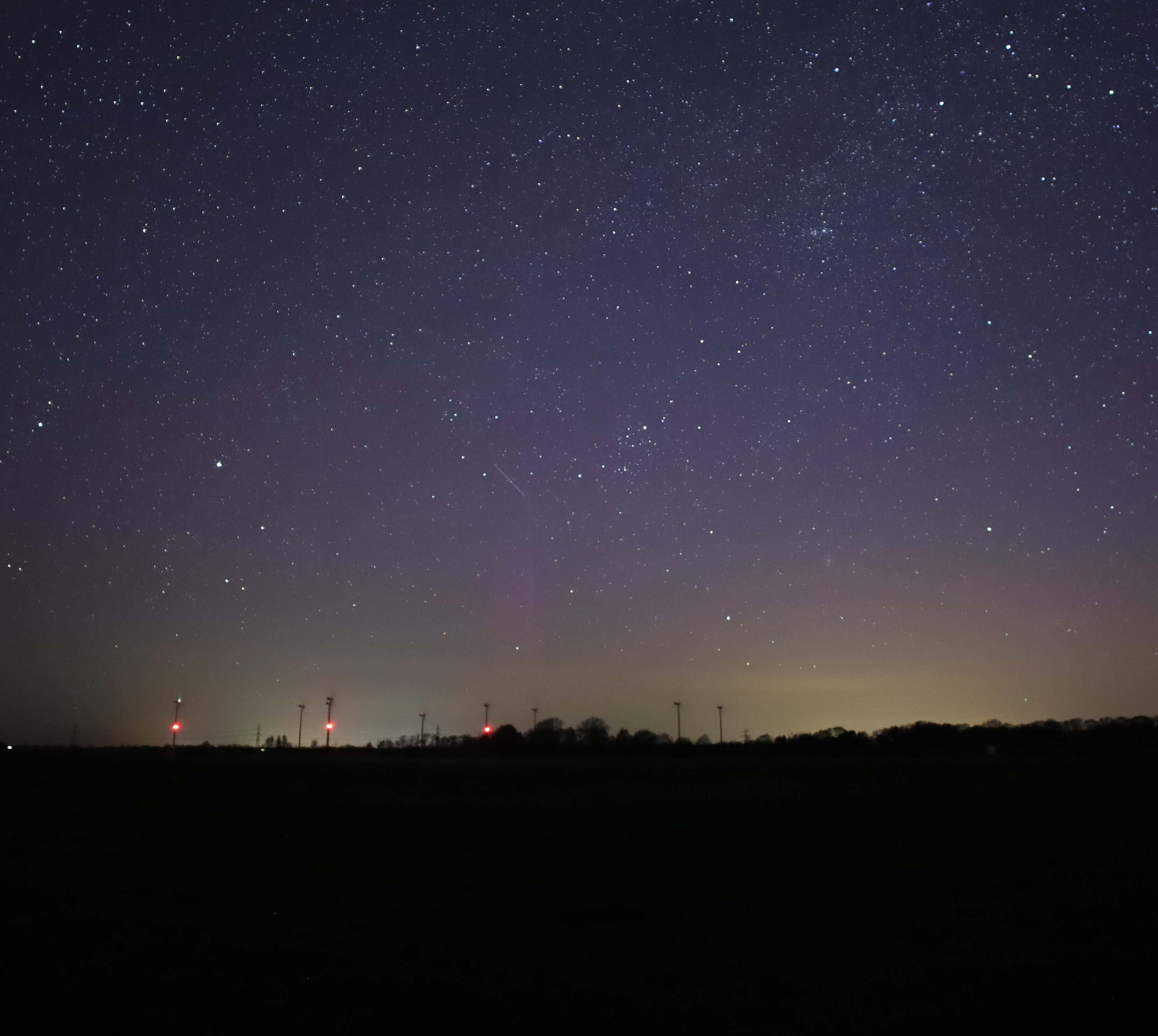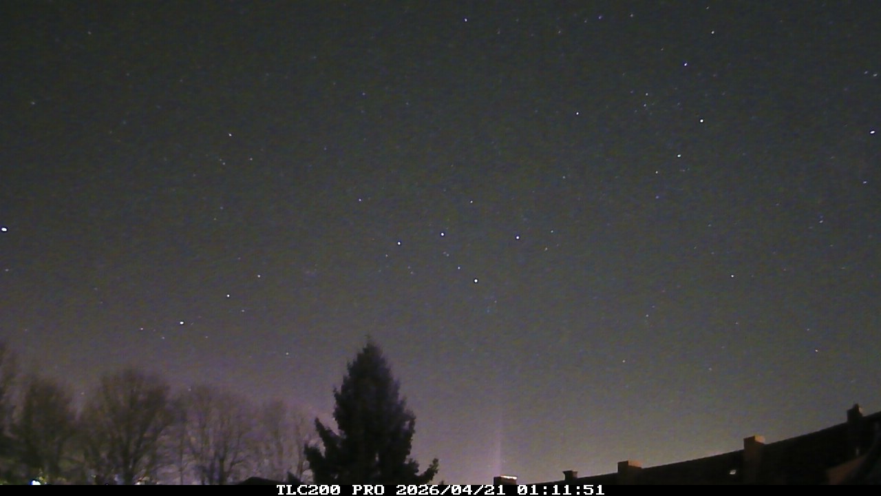 Die automatische Aufnahme meiner Dachkamera ist wie immer am Standort bei Lübbecke (entspricht ca. 52.3°N) entstanden. "Auffällig" sind die Lila-/Magenta-Farbtöne unter der vom Stadtlicht illuminierten Wolkenbank.
