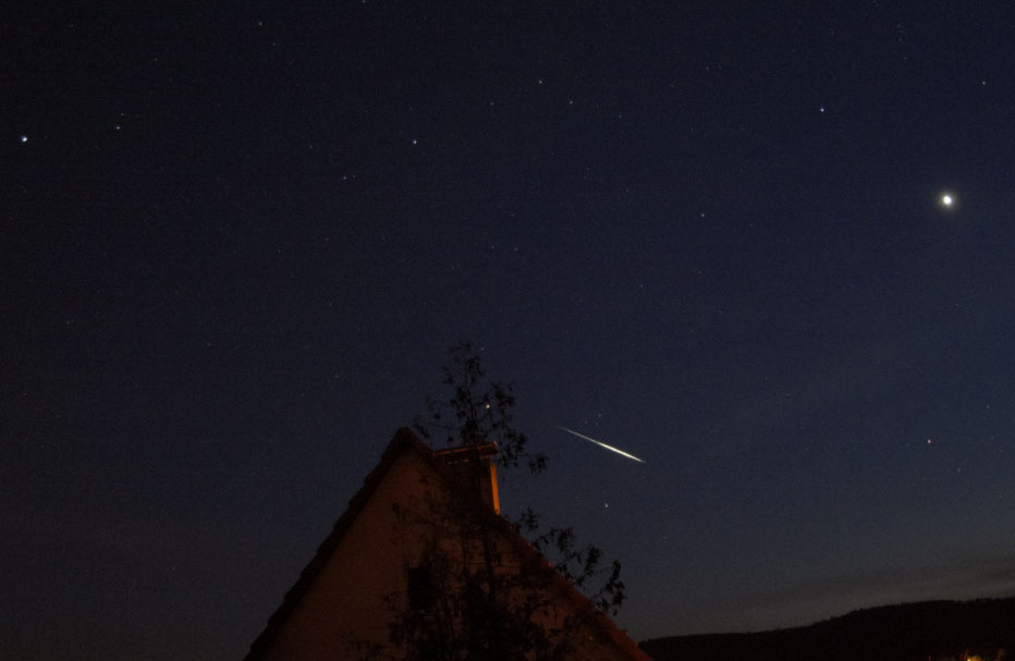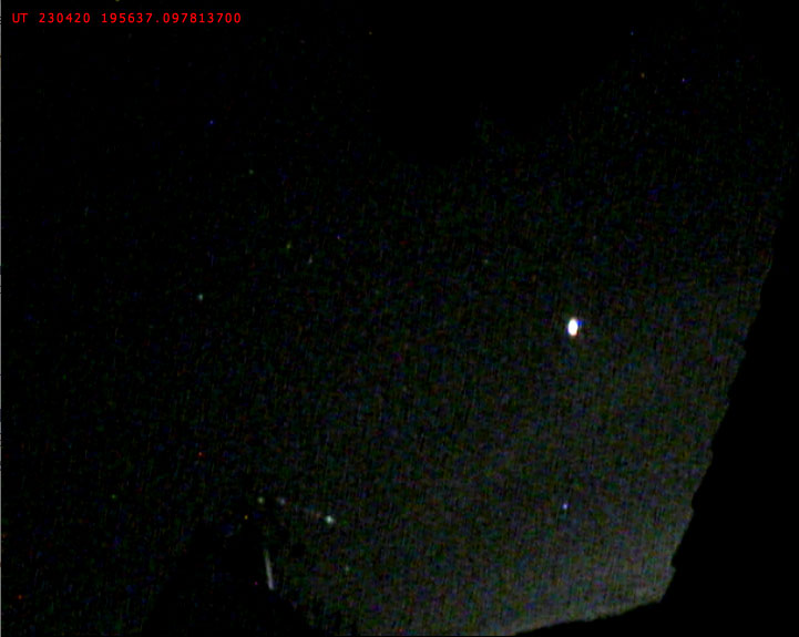 Ich wollte nicht wie die vergangenen Tage eine Strichspuraufnahme machen, sondern die einzelnen Punkte aufs Bild bringen. Aber irgendwie ist es (für mich zumindest) schwierig einen Kompromiss zu finden zwischen Verschlusszeit, Brennweite und ISO (die bei der EOS 7d eh ne Katastrophe ist ab 3200), da kam leider nix gescheites dabei raus, leider. Mit der 60d hab ich parallel dazu gefilmt, hier ein Frame daraus: