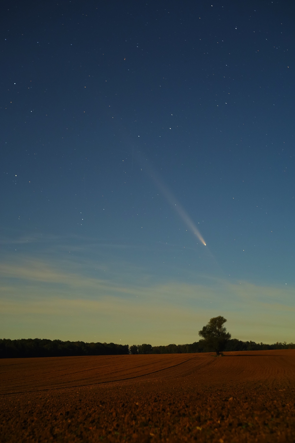Auch von mir ein Komet vom gestrigen Abend. Die Bedingungen waren allerdings eher suboptimal. Ziemlich viele Zirren unterwegs, die meiste Zeit war der Komet visuell nicht zu erkennen. Nur in wenigen Momenten wo es Lücken gab konnte ich ihn erkennen. Im 8x42 Fernglas war er leichter zu identifizieren. Der Mond tut sein Übriges.
