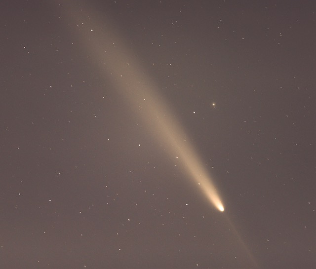 Gestern von Riesa aus bei tollem Wetter herrlich zu beobachten. Bereits in der Dämmerung ca. 15 Minuten nach Sonnenuntergang gefunden und im 20x100 Miyauchi beobachtet. Mit fortschreitender Dämmerung immer deutlicher inklusive Schweif und trotz Mondhelligkeit. Im Fernglas eindrucksvoll, mit bloßem Auge sehr auffällig und selbst unbedarfte Passanten erkannten ihn.