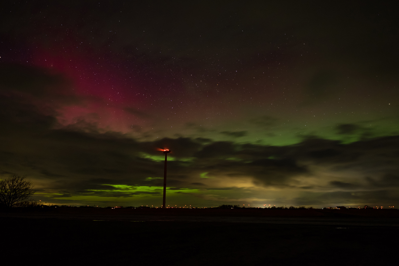 Beim genauen Hinsehen, wird auch deutlich, das zeitgleich an den Wolkenlosen Stellen Polarlicht zu erkennen ist.