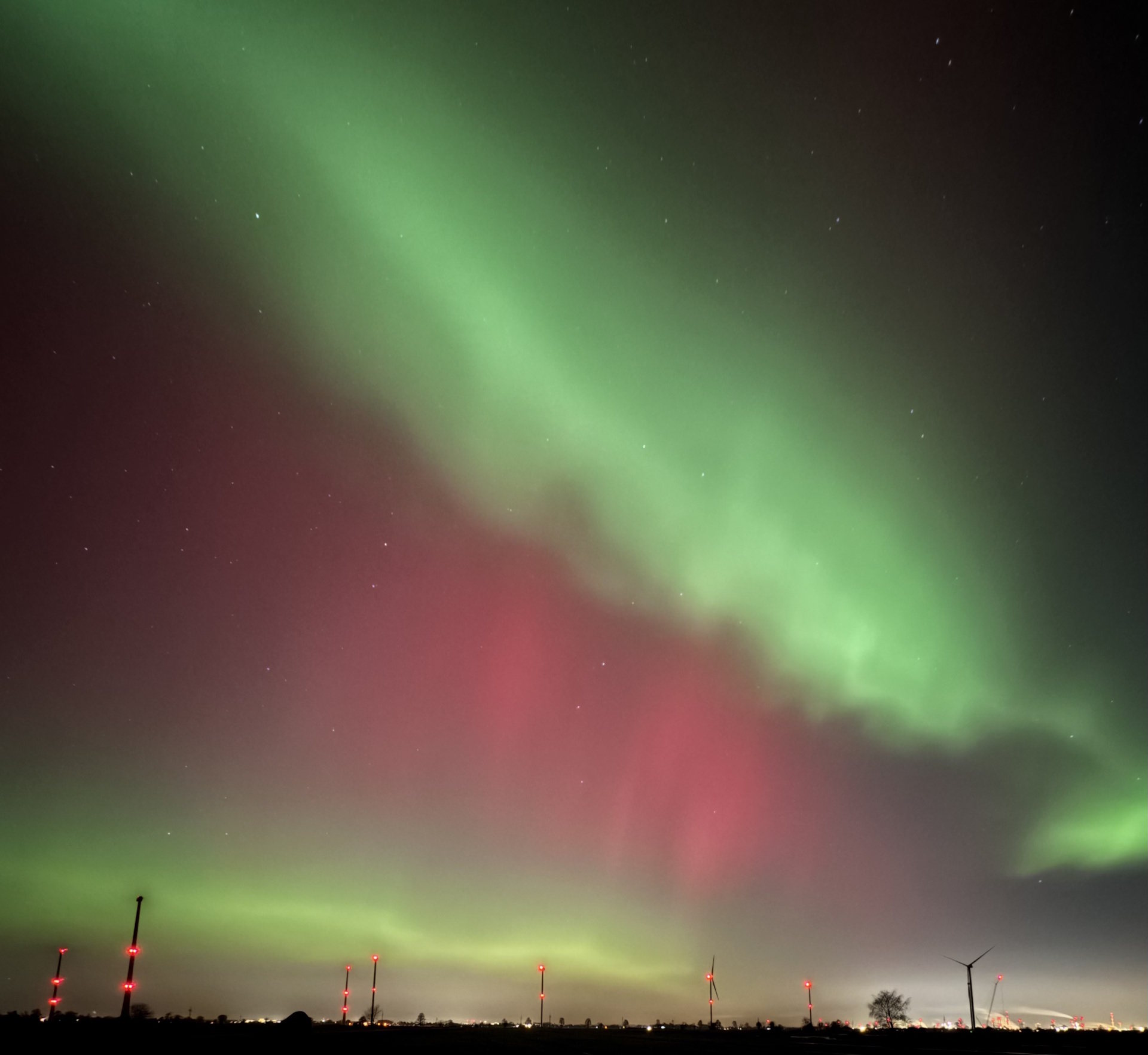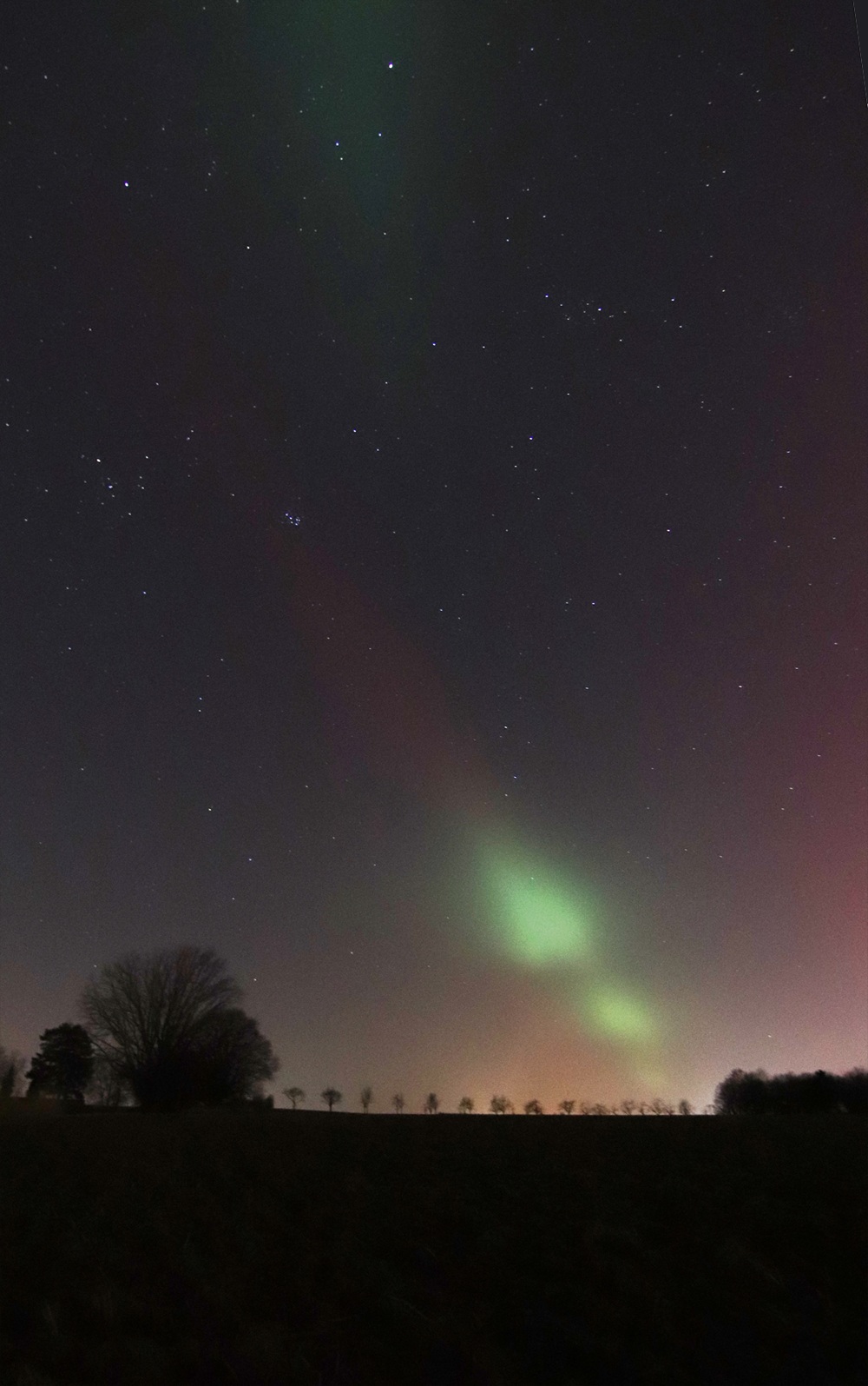 Helligkeit: Anfangs schwach visuel, ab 22:15 Uhr explodierte die Aktivität und es wurde deutlich hell und Farben waren sichtbar. Dies gipfelte gegen 22:40 Uhr mit unfassbaren extrem hellen grünen (RAGDA?)-Band, was sich über den Zenit bis oberhalb von Orion schnell ausbreitete! Im Westen gab es auffällige pulsierende Ragda-Flecken mit starker dynamischer Form- und Größenänderungen.