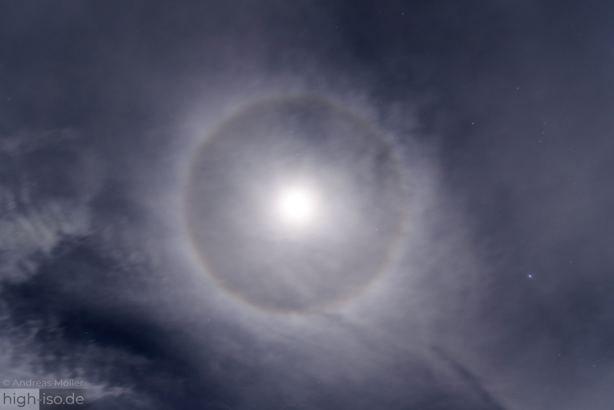 vorigen im letzten Juli. Die jetzige Mondfinsternis war allerdings viel besser zu beobachten, weil Hoch Brigida quer über Deutschland lag und alle Wolken in der Region vertrieben hat. Nur die Lichtverschmutzung von den belgischen Autobahnbeleuchtungen konnte einem noch in die Suppe spucken. Die Beobachtung war diesmal allerdings eine Prüfung für Mensch und Ausrüstung, denn an meinem Beobachtungsort bei Kalterherberg war es -13 °C kalt. Für die Fotos ist die Kälte sogar besser, denn durch die natürliche Kühlung arbeitet der Bildsensor etwas rauschärmer.