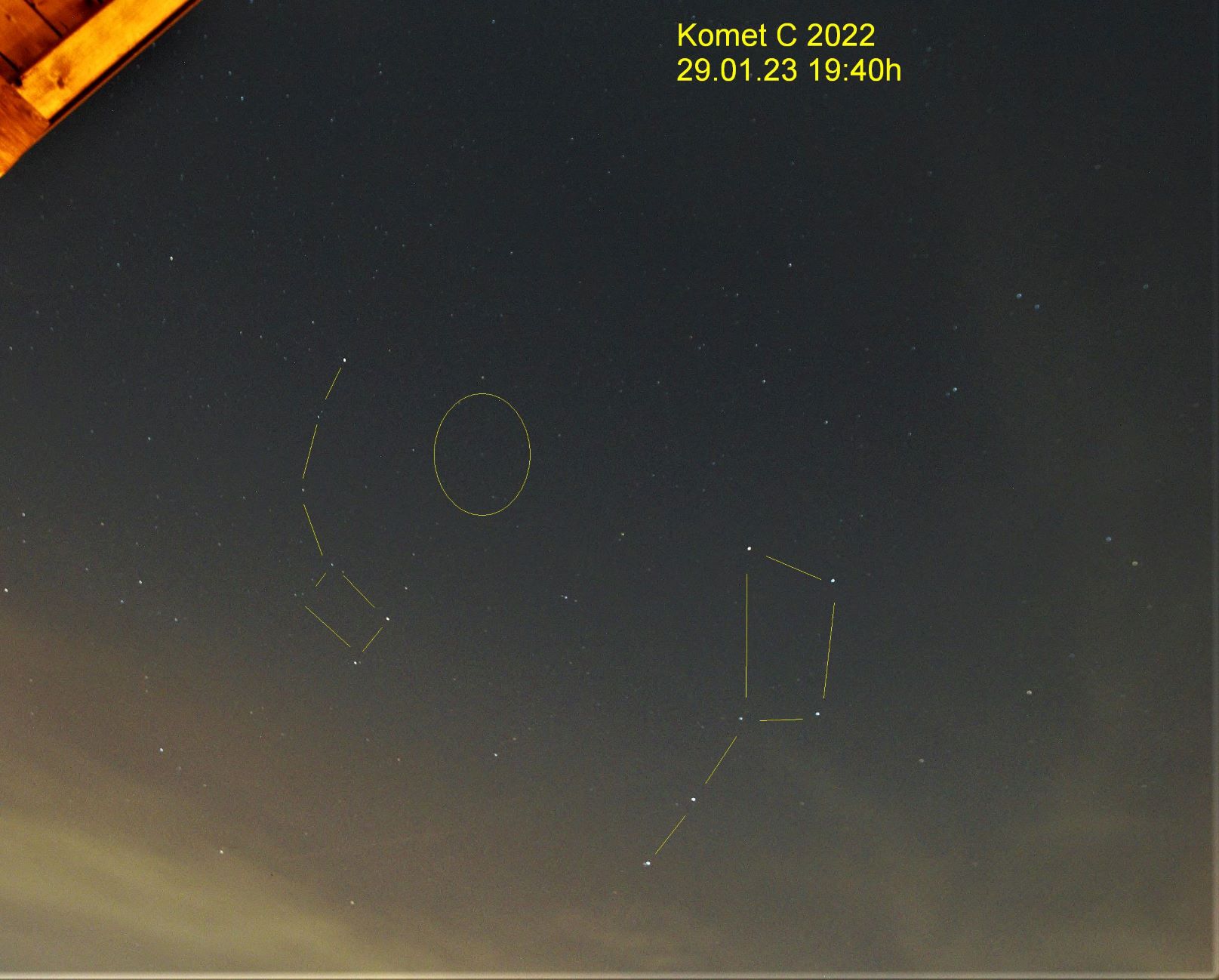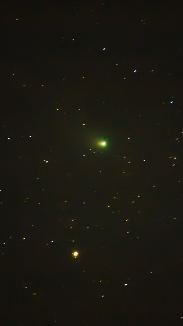 Ich habe ihn heute am 05.02.23 gegen 19h bei Vollmond neben Capella sehr diffus gesehen durch meinen Skywatcher 120/900ed. Bei diesen Lichtverhältnissen kein Wunder! Ihn durch den Sucher der Kamera zu bekommen und scharf zu stellen war durch die Steillage des Teleskopes ungemein schwierig, hätte mir fast nen Wirbel bei minus 3 Grad durch diese fürchterlichen Verrenkungen rausgequetscht. Aber immerhin, ein klarer Himmel heute nach vielen Sturmtagen. Mal sehen, wie er sich am 10.2. neben Mars macht, dass könnte eine spannende Aufnahme werden.