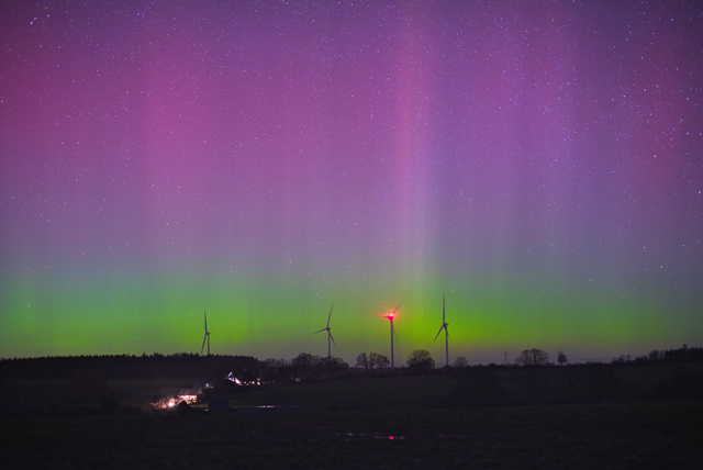 Auch in Süderlügum wieder fotografisches Polarlicht (15.03.23 23 Uhr bis 16.03.23 00.40 Uhr MEZ).