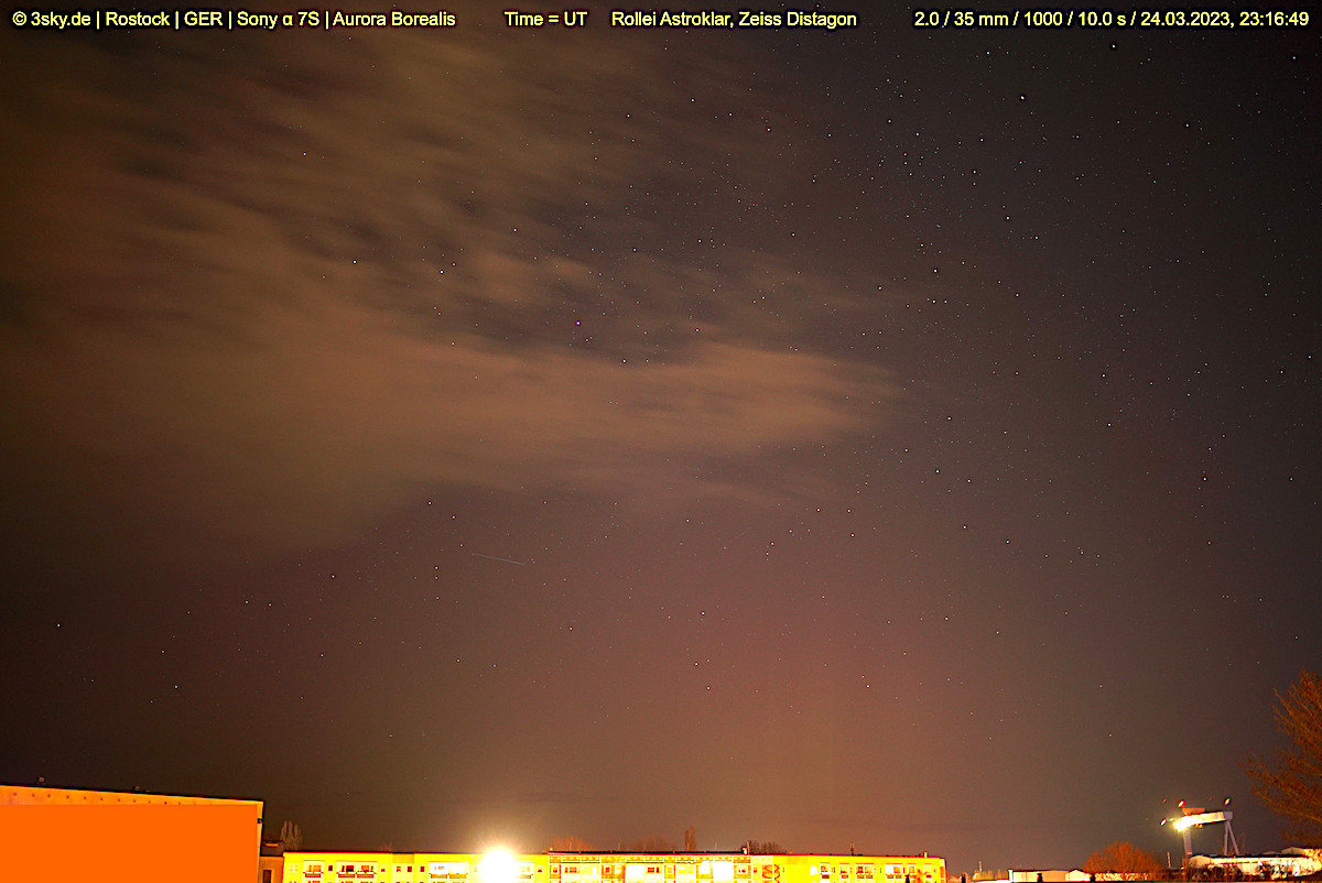ca. 23:42 UT schwacher nordöstlicher Strahl