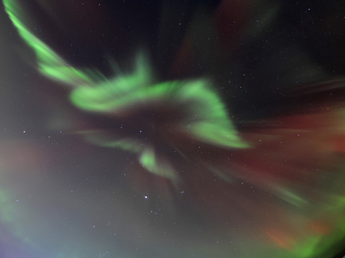 Schon auf den ersten stark verwackelten Bildern mit ISO 16000 von zuhause aus (freihand – für das Aufstellen des Stativs habe ich mir gar nicht Zeit genommen) bemerkte ich den SAR-Bogen.