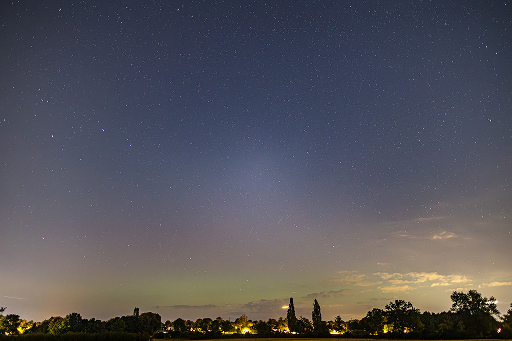 we got a slight aurora display from Jura, France, between 0:40 and 1:00 UT, with a faint tall ou giant blue ray.