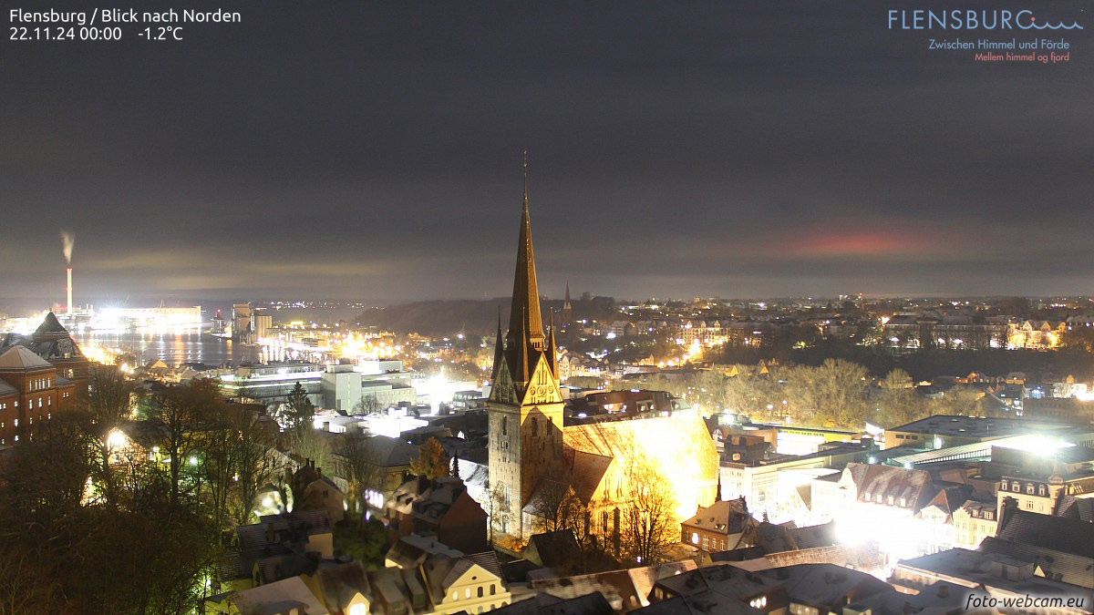 Ich hab gerade auf die Grafik der Polarlichtwahrscheinlichkeit geschaut und da fallen zwei Spitzen auf, die nach unserer Zeit kurz nach 23 sowie 24 Uhr lagen. Danach könnte es doch in Flensburg stimmen?