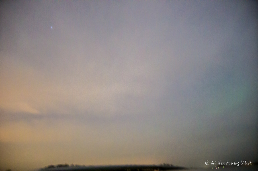 In der Tat: Die Kurzsichtung des PL hier an der Ostsee war bei diesigem Himmel möglich. Aufnahme mit iso 800 und 10 sec ging auch nur, weil es ein intensives PL war. Irgendwann haben wir auch 'mal wieder klaren Himmel beim event.