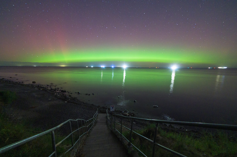 Hab dann alle Webcams mit Blick nach Norden angeschaut und gesehen, dass es um 1 Uhr die besten Fotos gab. Da ich noch länger am PC saß, habe ich dann gesehen, dass es um 4 Uhr noch mal eine kurze Phase mit Polarlichtern gab.