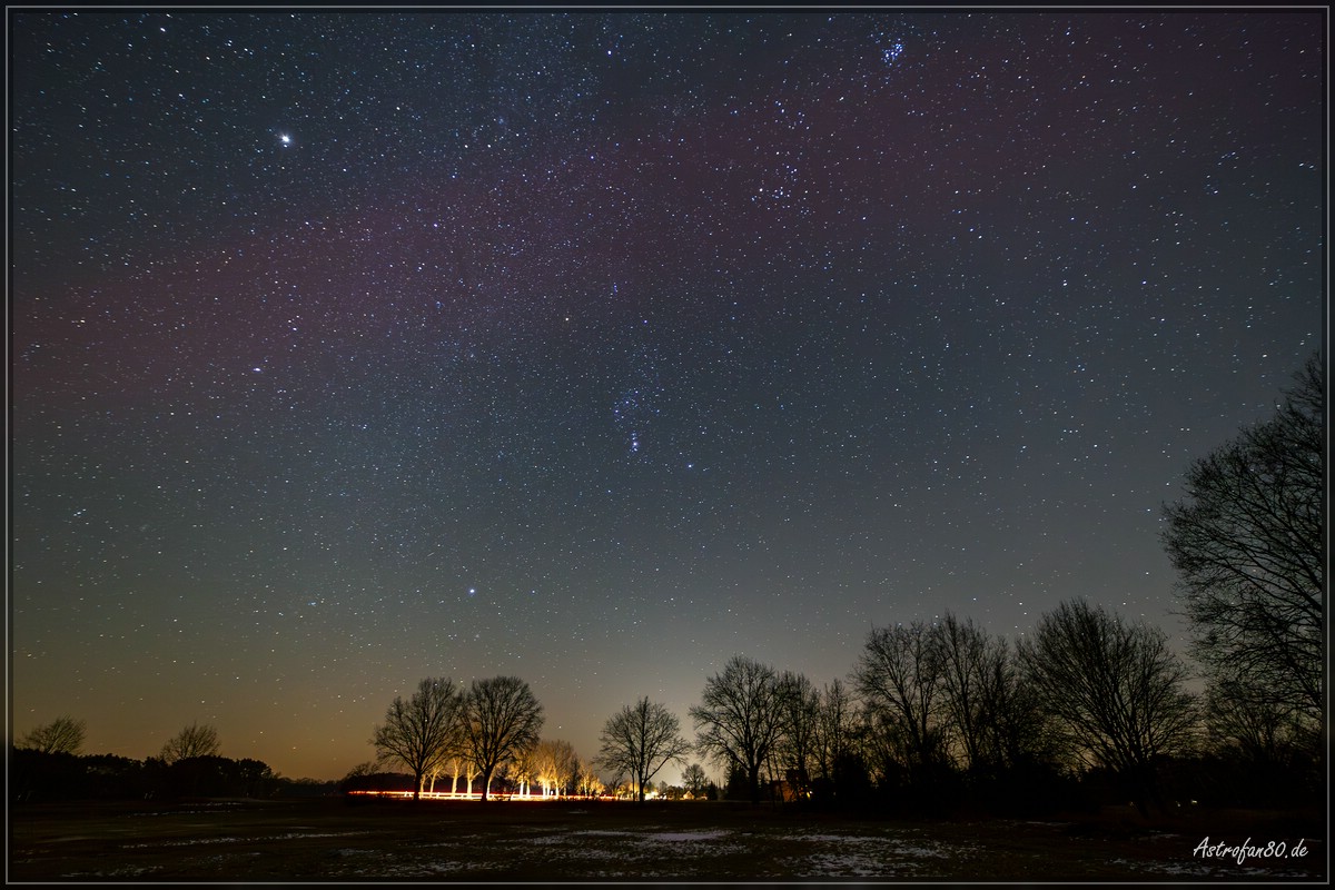 Und Richtung Süden staunte ich nicht schlecht. Was ist das, oberhalb des Orion und mitten durch den Stier? Ein SAR Bogen?