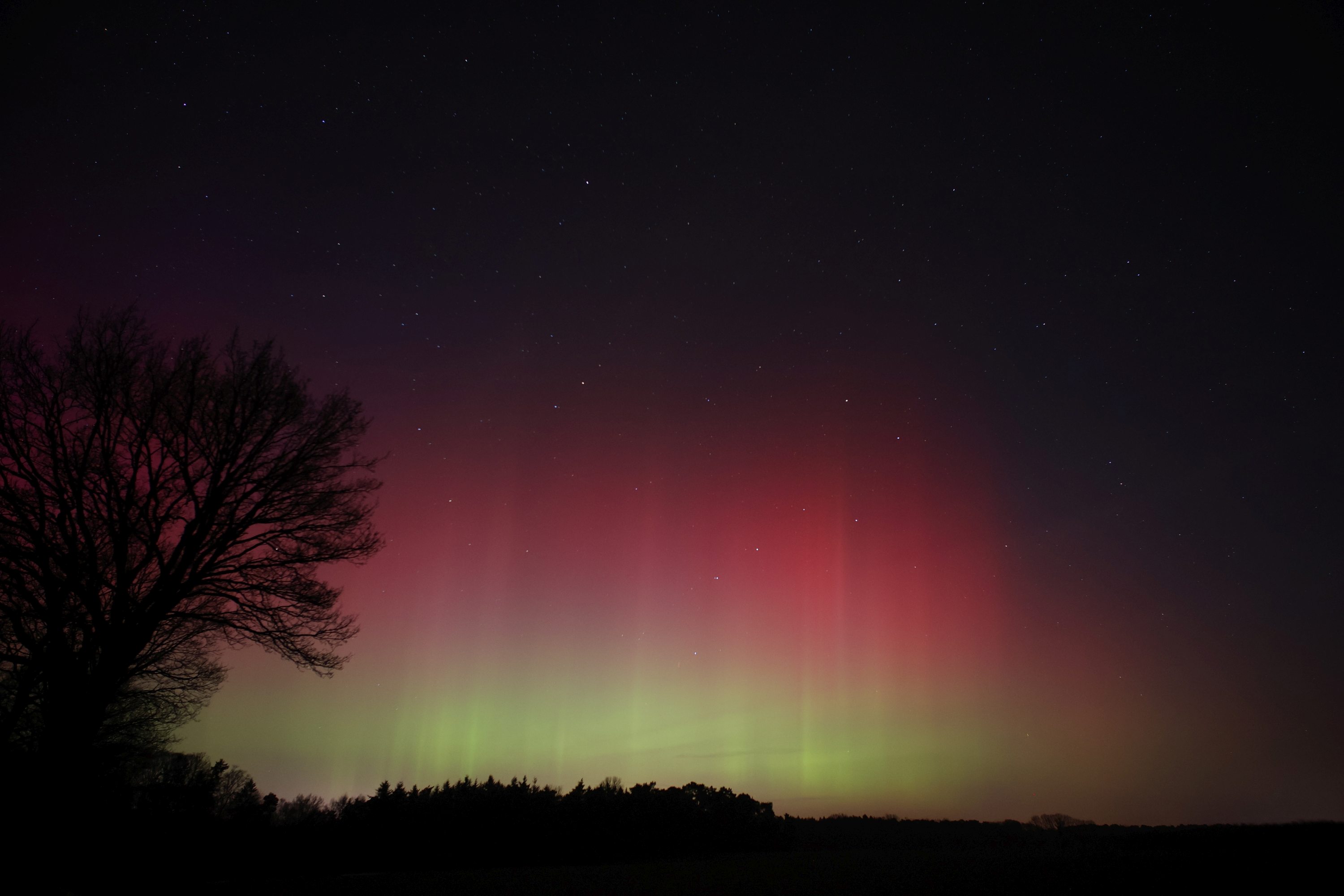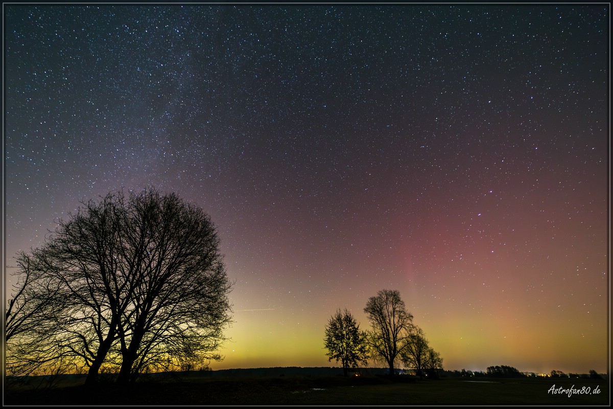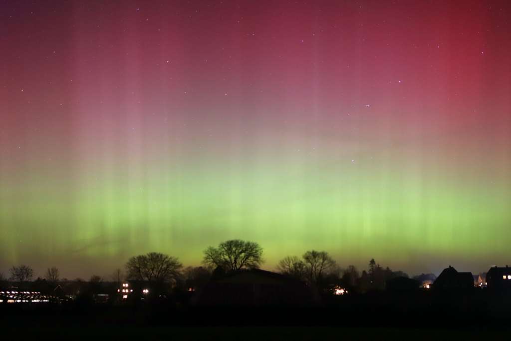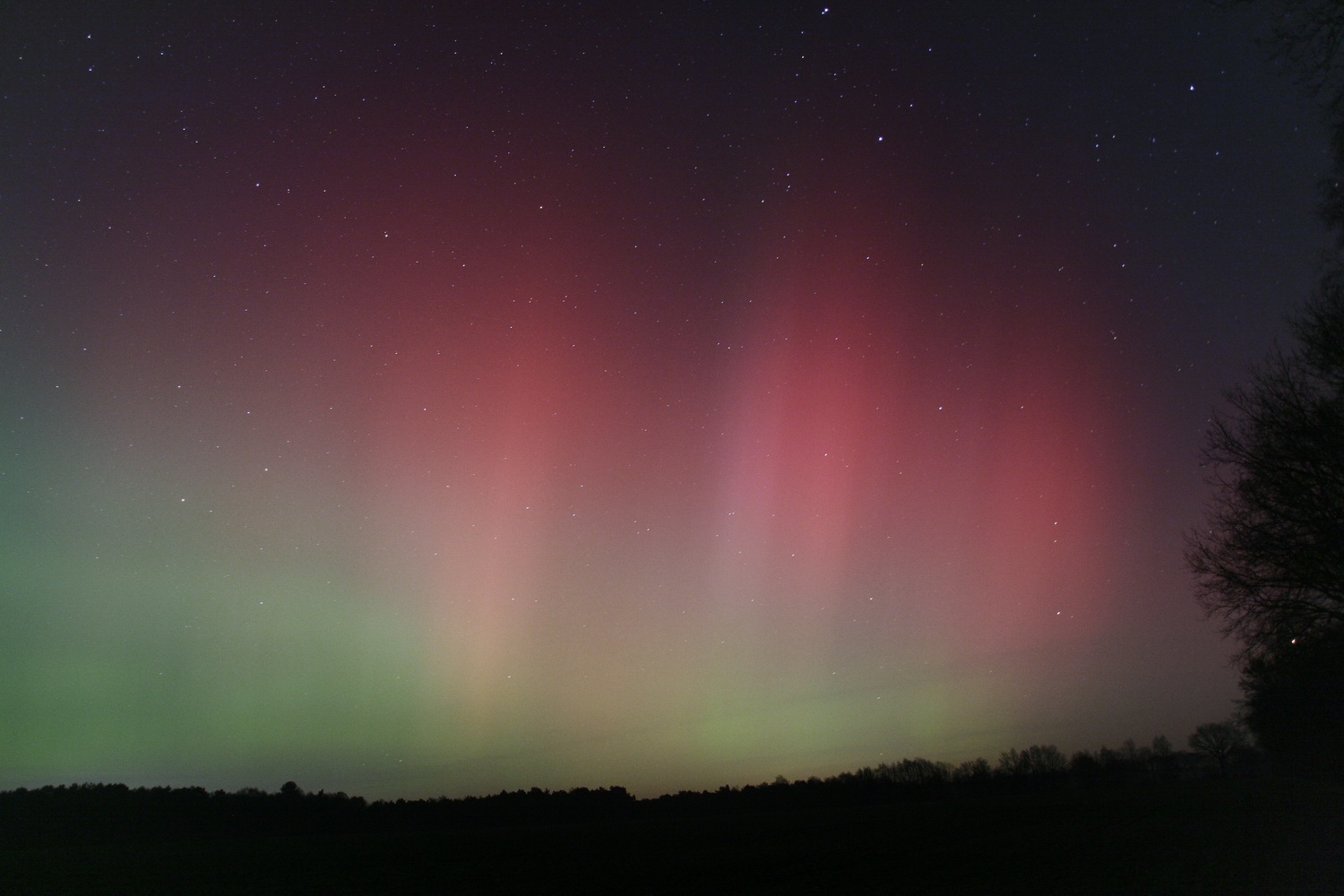 Kommentar: Gleich die nächste Nacht mit außergewöhnlichen Polarlichtern. Ich hielt mich in Wolkenwehe und Poggensee auf nahe Bad Oldesloe.
