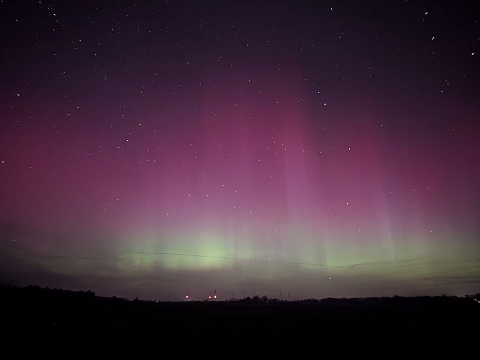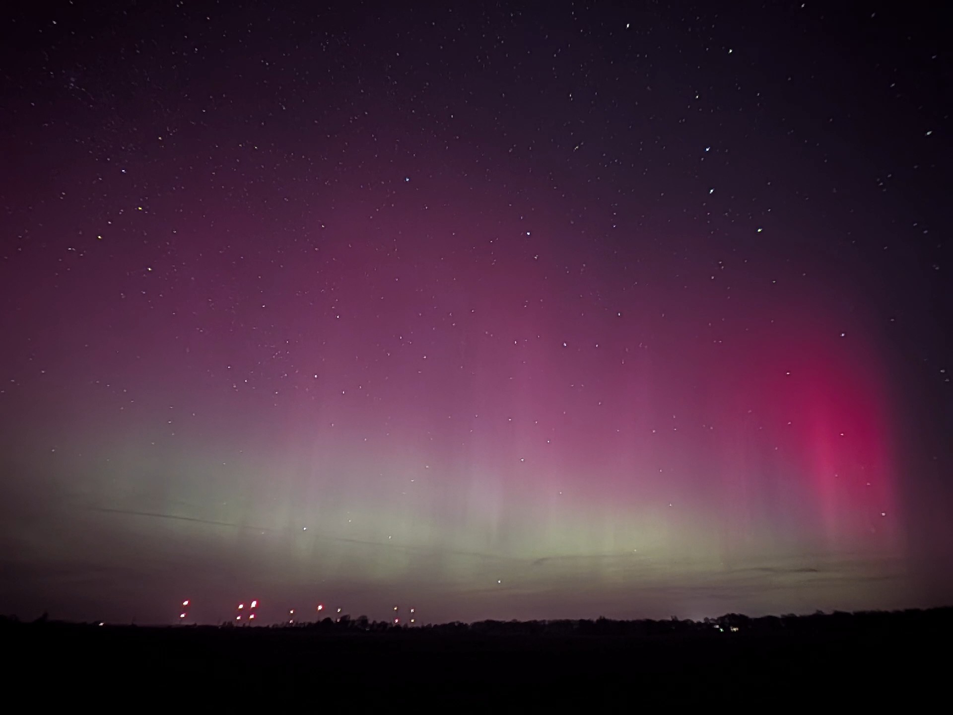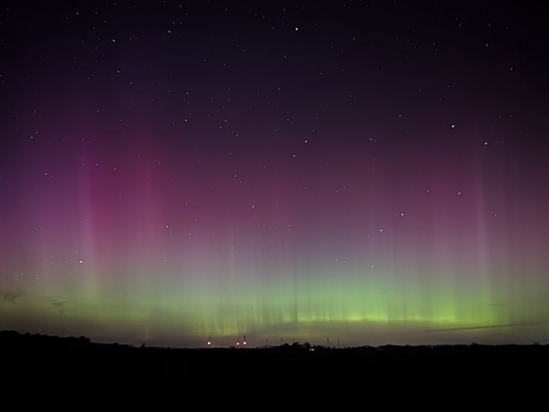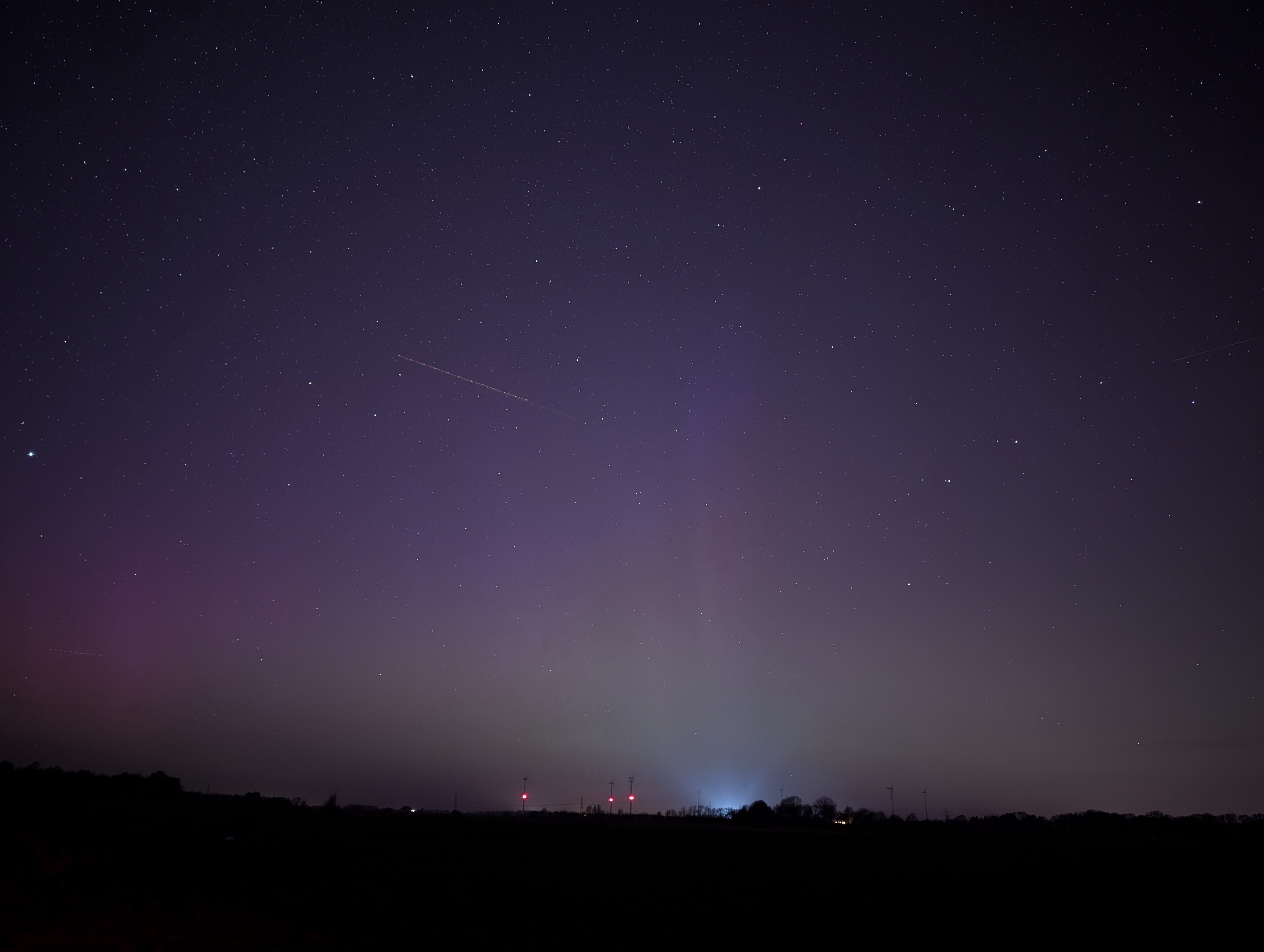 Es ging ja im Laufe des Abends noch weiter ... ich habe nochmal zwischen ca. 20:00 h und 00:50 h mit meinem Samsung Galaxy S24 fotografiert. Überwiegend war hier in Jeersdorf grünes Polarlicht zu sehen, dazu blasses rotes. Himmelsrichtung: von Nordwest bis Nordost. Freie Sicht ist immer NNO überm Jeersdorfer Holz.