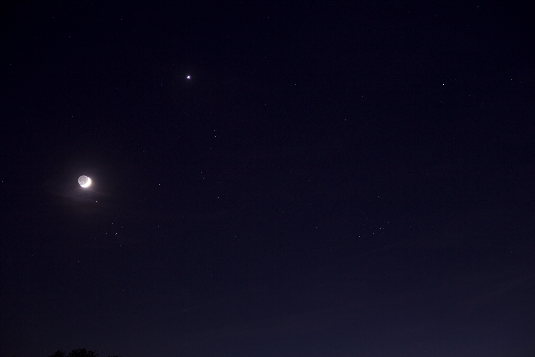 schönes Bild. Bei mir war es gestern Abend zu bewölkt. Mond schien durch, mehr nicht. Ich werde es heute Abend noch einmal versuchen. Merkur und Mars kommen ja näher und der Mond steht genau im Stier. Ich glaube auch fast, dass heute der Tag gewesen wäre, wo man an Hand der Dicke des Mondes entschieden hätte, ob es einen Schaltmonat gibt oder nicht. Nun ja, funktioniert heute wohl so nicht mehr. Der Frühlingspunkt ist zu weit weg gewandert.