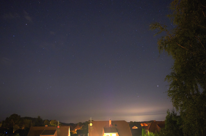 zur Vervollständigung: Hier in Tröndel (53,3°N, 10,5°O) hatten leider auch mit horizontnahem Nebel zu kämpfen, dabei riß es doch son schön auf ab ca. 21:00 UTC. War kurz von 23:00 UTC bis 24:00 UTC draußen. Mit etwas gutem Willen maximal etwas "Airglow" erhascht..