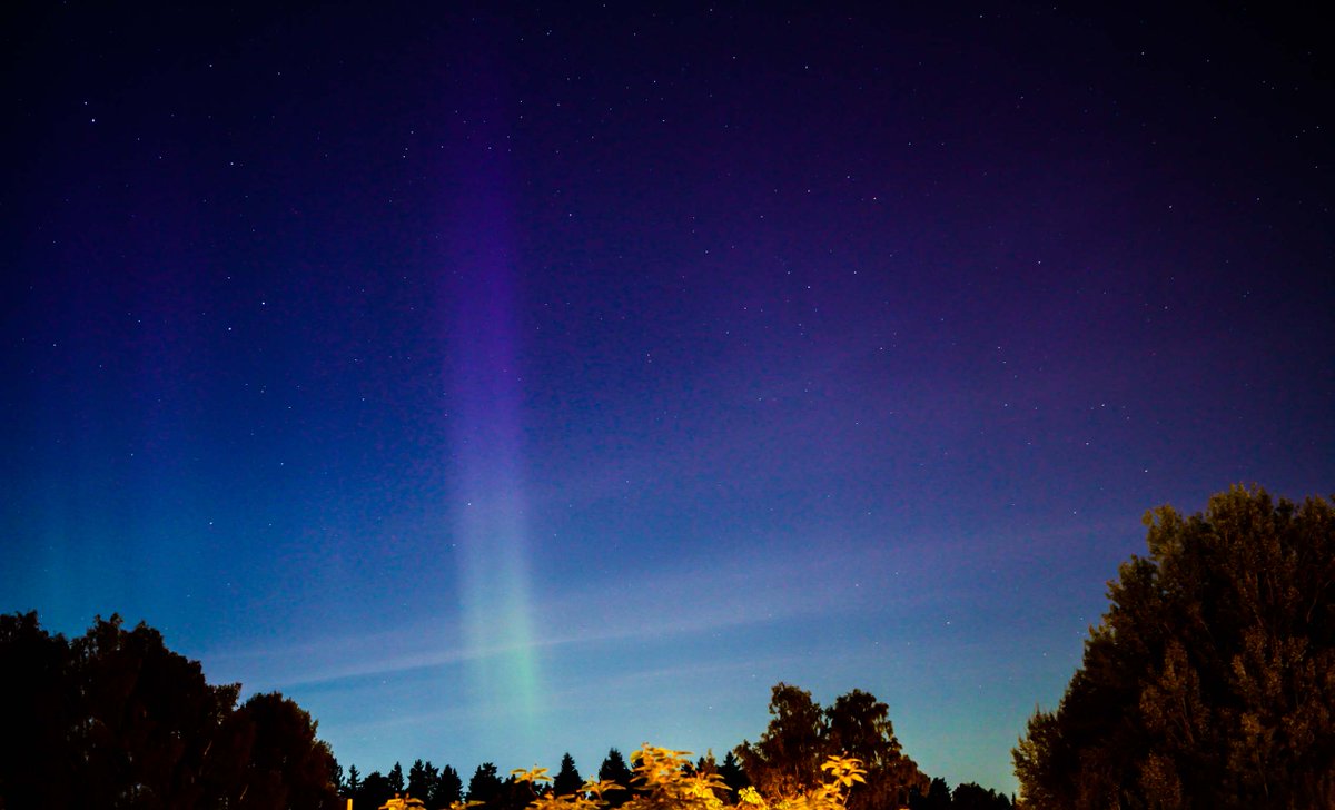 Was aber auch dagegen spricht: Ich mache ja des Öfteren Fotos nach Norden. Der lila Strahl war noch nie da. (Irgendwann ist immer das erste Mal, schon klar.)