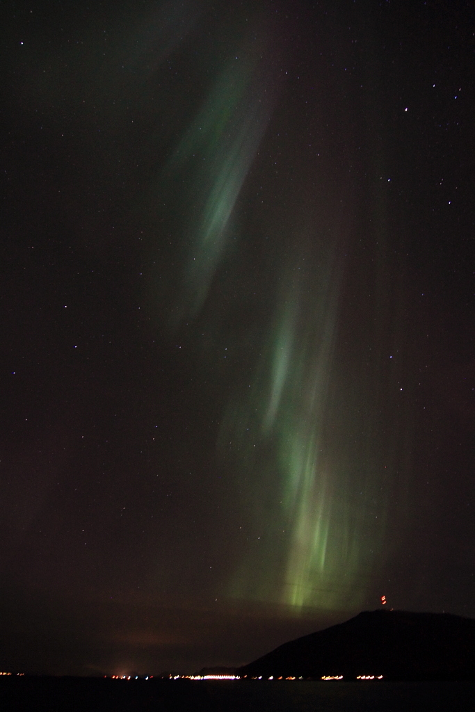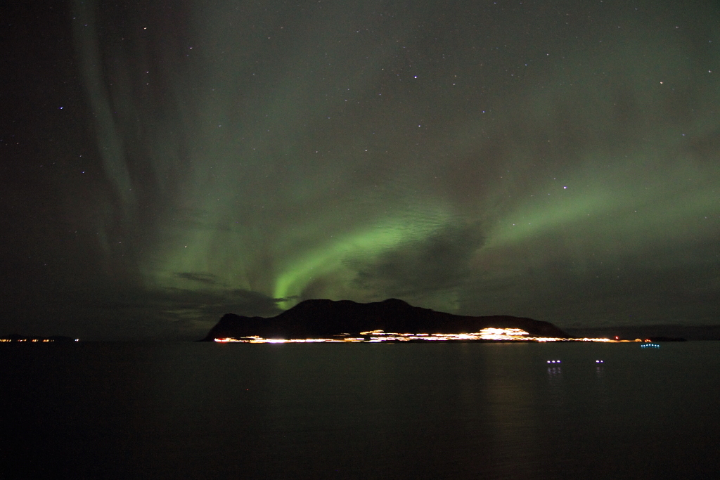 wir hatten das große Glück, dieses Ereigniss vom der MS NordNorge aus zwischen Molde und Alesund zu beobachten. Und dass, obwohl das Wetter bis zu diesem Abend nicht sehr gnädig mit uns war. Diesmal riss der Himmel auf, und hat uns eine perfekte Polarlicht-Nacht beschert. Diese Bilder möchte ich Euch nicht vorenthalten.