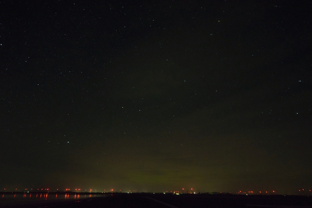 Leider zogen gerade hier immer wieder Wolkenschleier durch. Dies sind noch besten Fotos. Der Rot-Anteil entsteht durch die Warrnleuchten der vielen Windkraftanlagen.