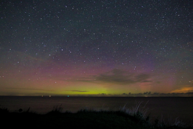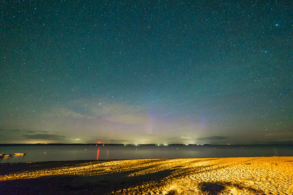 bin kurzentschlossen in Richtung Ostsee gefahren, nachdem es nördlich von Berlin leider sehr bewölkt war. Bin gegen 2 Uhr Ortszeit in der Nähe von Barth angekommen und konnte zuerst fotografisch Polarlicht und dann auch schwach visuell einige Beamer feststellen.