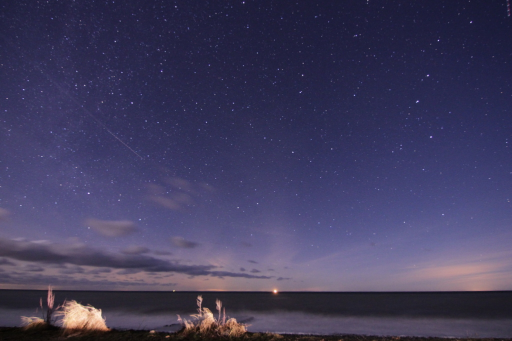 Um etwa 0:15 MEZ war ich auf einem Feldweg nördlich von Sellstedt und konnte schon bei der ersten Aufnahme schwache Strahlen am Display erkennen. Aufnahme wie immer mit Canon 6D und Walimex 24mm@f/2. ISO 6400 und t=6s.
