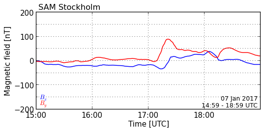 derzeit lese ich mit 1/5 Hz aus, man kann das auf 1 Hz verändern, aber dazu würde ich meine Datennahme darauf optimieren müssen. Ich kann Dir mal Daten (z.B. von gestern oder dem 26.1.) zukommen lassen. Ich mittele die Daten über je 60 Sekunden und filtere dann mit Störungsfiltern die "man-made" Effekte heraus. Den Vergleich der Rohdaten mit den gefilterten Daten sieht man hier: http://se.gner.cc/sam/logbook.html - Es handelt sich dabei auch um nicht absolut kalibrierte Messungen, das reicht aber für Warnsysteme natürlich aus. Für erste Versuche sind für Dich vermutlich die Rohdaten interessanter, richtig?