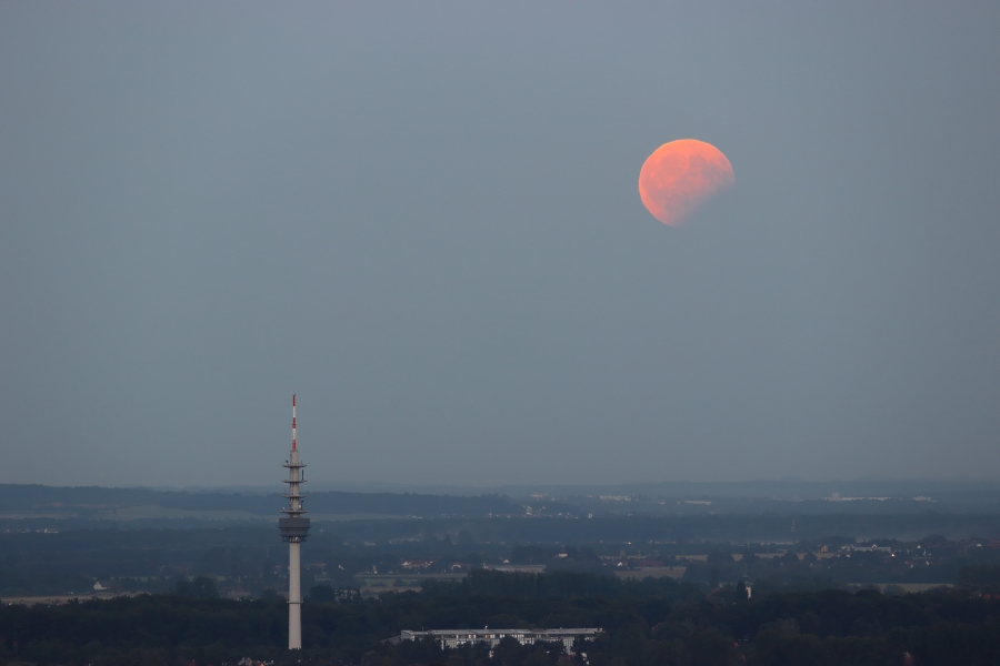 Ich habe den teilverfinsterten Mondaufgang über sächsischen Schweiz aufgenommen...