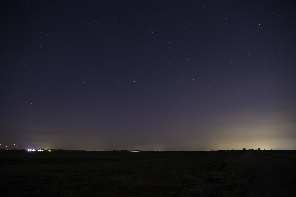 Alle Zeitangaben UTC: Die ersten Strahlen waren ab etwa 23:37 fotografisch zu erkennen, schon vier Minuten später wurde es derart intensiv, dass man den Strahl (Foto) deutlich visuell wahrnehmen konnte. Die Beamer reichten bis an den unteren Rand des großen Wagens, also bis rund 18 - 20° Höhe !
