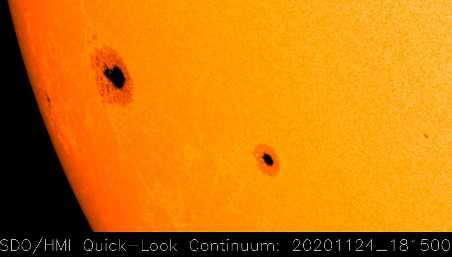 für den neuen 25. Sonnenfleckenzyklus eine derzeit recht ansehnliche, kleine Gruppe auf der Südhalbkugel der Sonne: