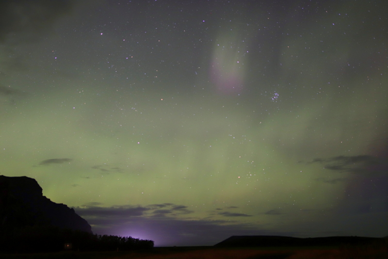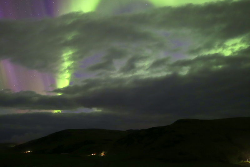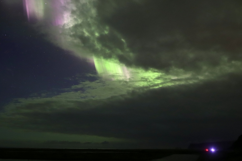 Am Diestag Abend (07.09) sahen wir, dass BZ ins Minus gerutscht war und die Hoffnung auf Polarlicht bestand. Nur war es in unserer Region total bewölkt. Die Wolkendeckungsprognose ließ jeoch die Hoffnung zu, dass es östlich von uns, also ab Vik aufgelockerter ist. Von unserem Aufenthaltsort waren somit ca 70km zurückzulegen, einfache Entfernung. Glücklicherweise entschieden wir uns loszufahren (siehe Bilder). Bei diesem heftigen und auch sehr schnellem Display hätte ich eigentlich damit gerechnet, dass es auch bei "uns", also zumindest in Norddeutschland für schwach sichtbares Polarlicht gereicht hätte, scheint aber leider nicht der Fall gewesen zu sein.....schade, hätte mich für Euch gefreut...