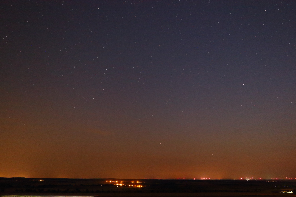 Ich stelle die folgenden Aufnahmen (alle mit demselben Bildausschnitt & Nord-Ausrichtung der Kamera, derselben Belichtung und denselben Entwicklungseinstellungen in DPP) mal zur Diskussion. Bei der Sättigung habe ich mich bewusst zurückgehalten (2/4). Passend zu den Peaks in Michaels Tool vermute ich, dass meine Kamera hier zeitweise fotografisches Polarlicht einfangen konnte. Neben dem recht dominanten Magentaanteil meine ich hinter dem leider sehr unangenehm auffallenden horizontnahen Vorhang aus Dunst und Rauch (von den immer wieder aufflammenden großen Waldbränden nördlich bei Falkenberg (Elster)) im Vor- und Zurücklauf im östlichen Teil der Aufnahmen auch schwache Beamer zu erkennen. Aber vielleicht ist da nur der Wunsch Vater des Gedankens. Das Unternehmen gestaltete sich so oder so als K(r)ampf gegen die zunehmende Morgendämmerung. Die Sonnenwindgeschwindigkeit hätte, nachdem der Bz frühzeitig lange Zeit unter -.4 gefallen war, und mich in Alarmbereitschaft versetzt hatte, ruhig höher ausfallen dürfen.