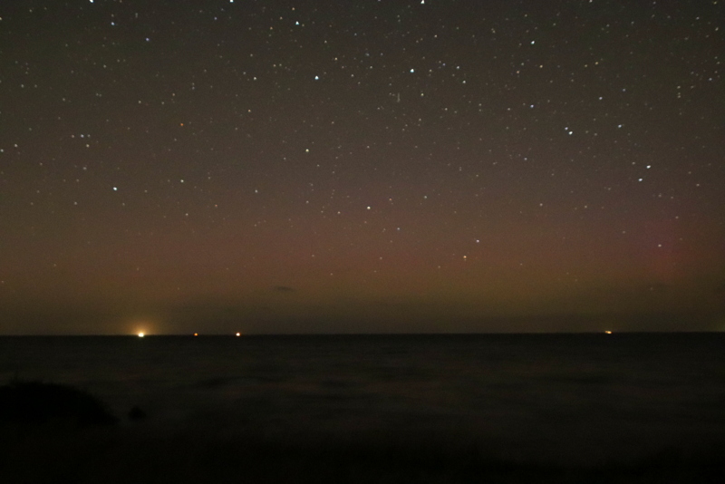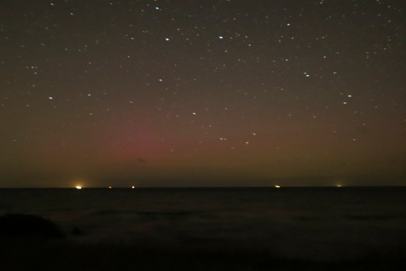 war von 22:10 UTC-22:40 UTC draussen (Hohenfelder Strand Ostsee; 54.39N; 10.49E). Den Substorm gegen 21:30 UTC habe ich leider verpasst, da ich noch unterwegs war, kurz nach Mitternacht lokaler Zeit fotogr. PL mit schwachen Strahlen. Visuell war für mich nichts wahrnehmbar. Drei Bilder stelle ich mal 'rein.