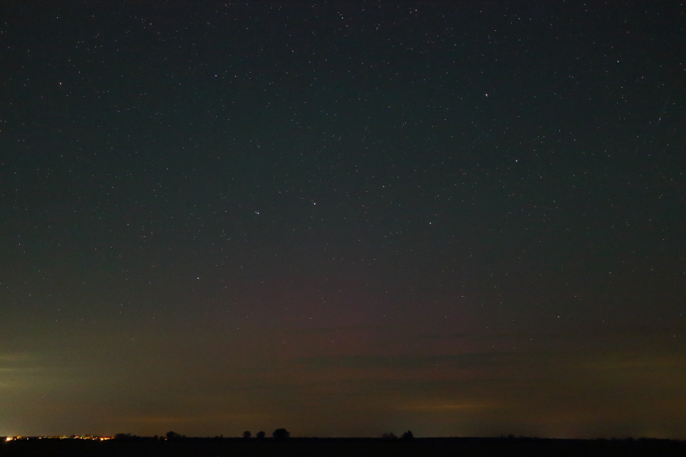 Zu viel gegrübelt, dann zu spät in die Puschen gekommen, die ersten Substorms verpasst, und die Bedingungen am Ausweichziel leider auch nicht so vorgefunden, wie ich es erhofft hatte. Die nach wie vor um sich greifende Lichtverschmutzung ist leider ein Graus. Hab versucht, noch das Beste aus der Misere zu machen. Und für fotografische Nachweise des Polarlichts mitsamt Airglow hat es dann am Ende ja Gott sei Dank noch gereicht. Belichtungstechnisch wäre auch noch mehr gegangen. Da habe ich nicht aufgepasst. Das war wohl nicht mein Tag. Ich habe mich dafür entschieden, den Substorm nach 03:00 MESZ zu bebildern.